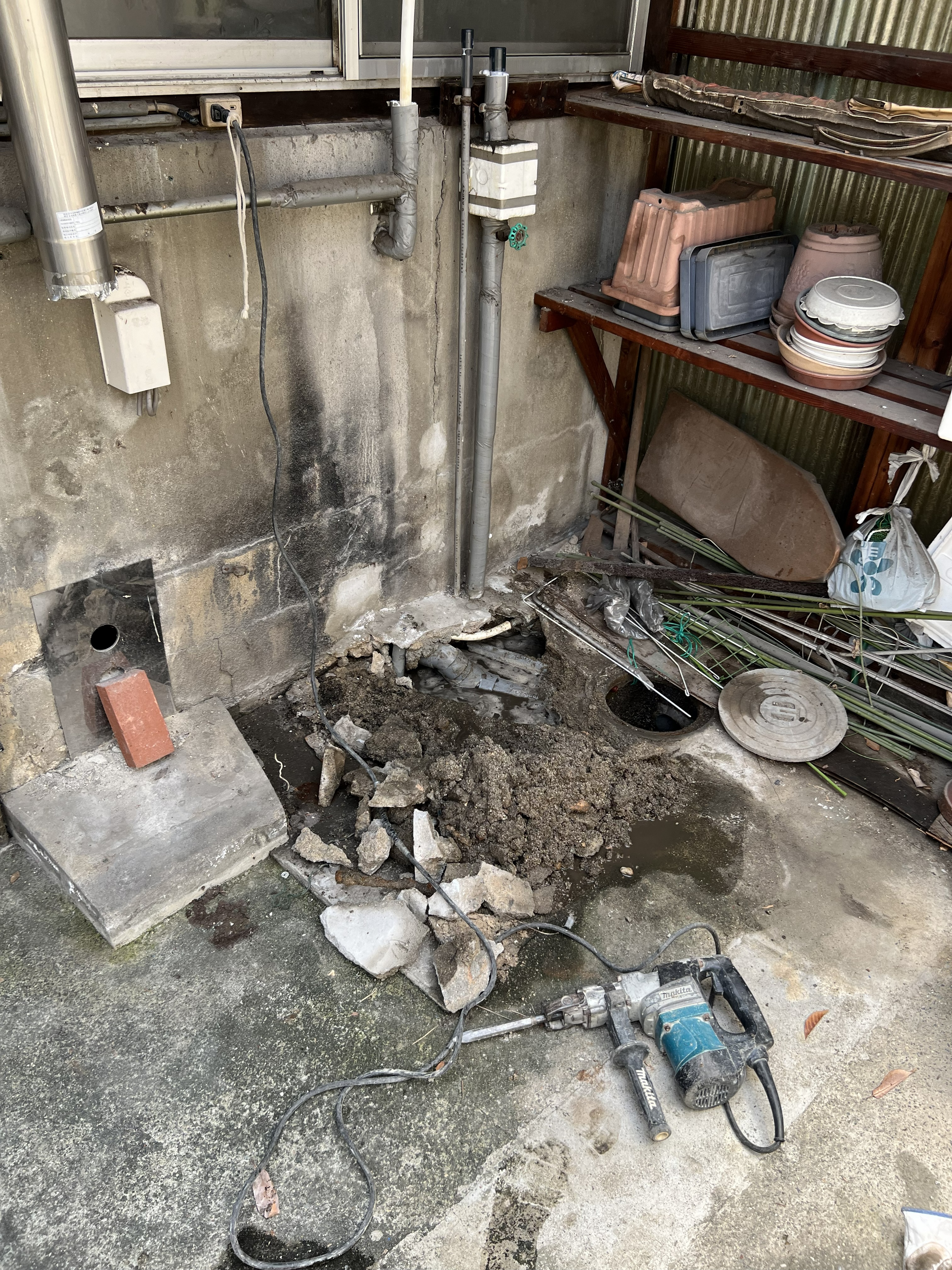 電気温水器本体を撤去しコンクリート土間を解体していきました。
