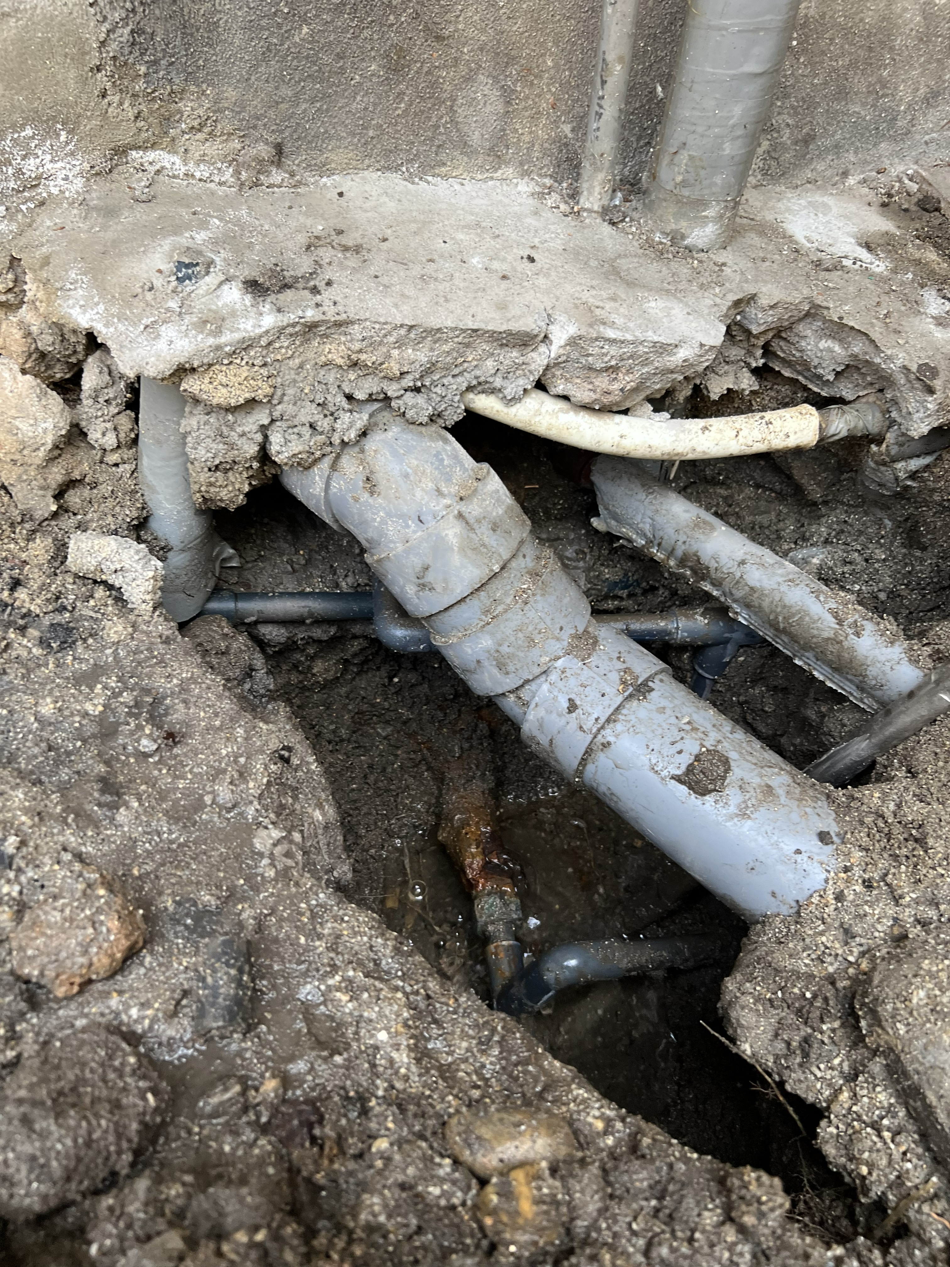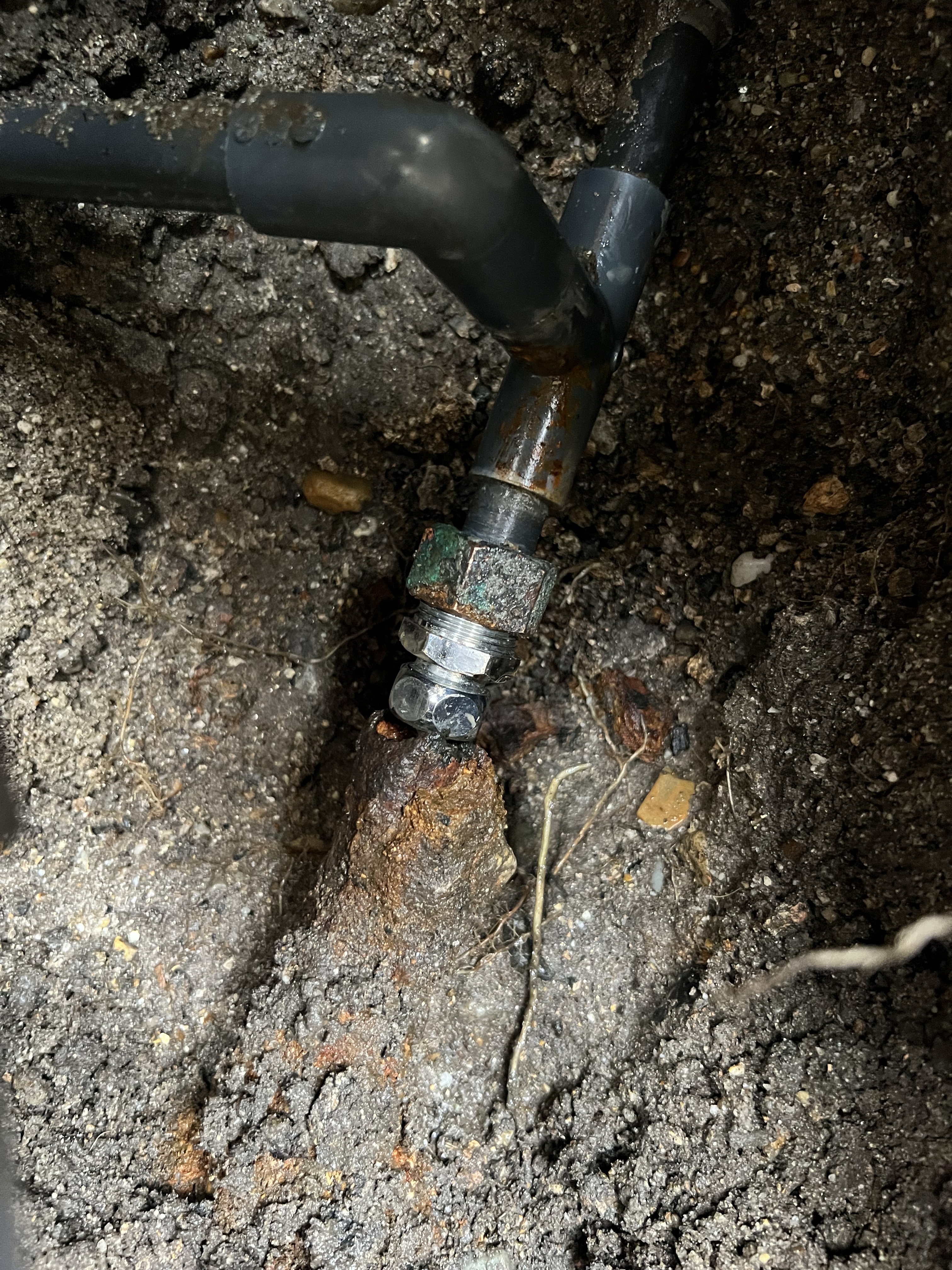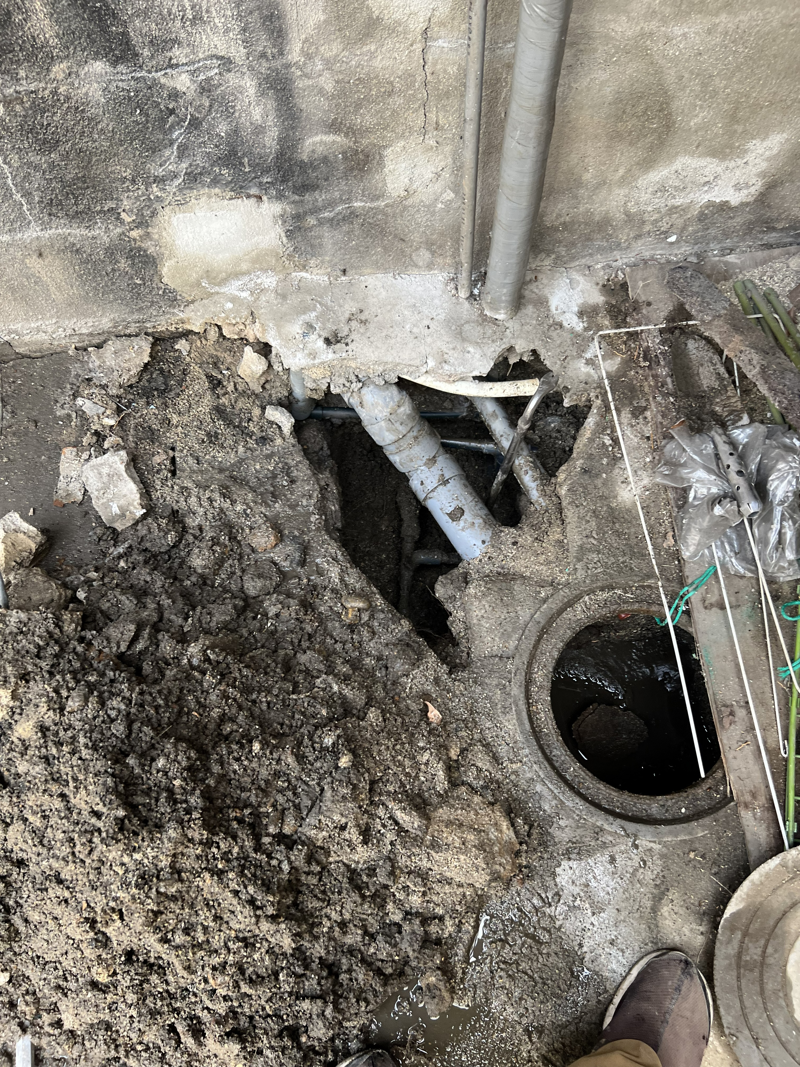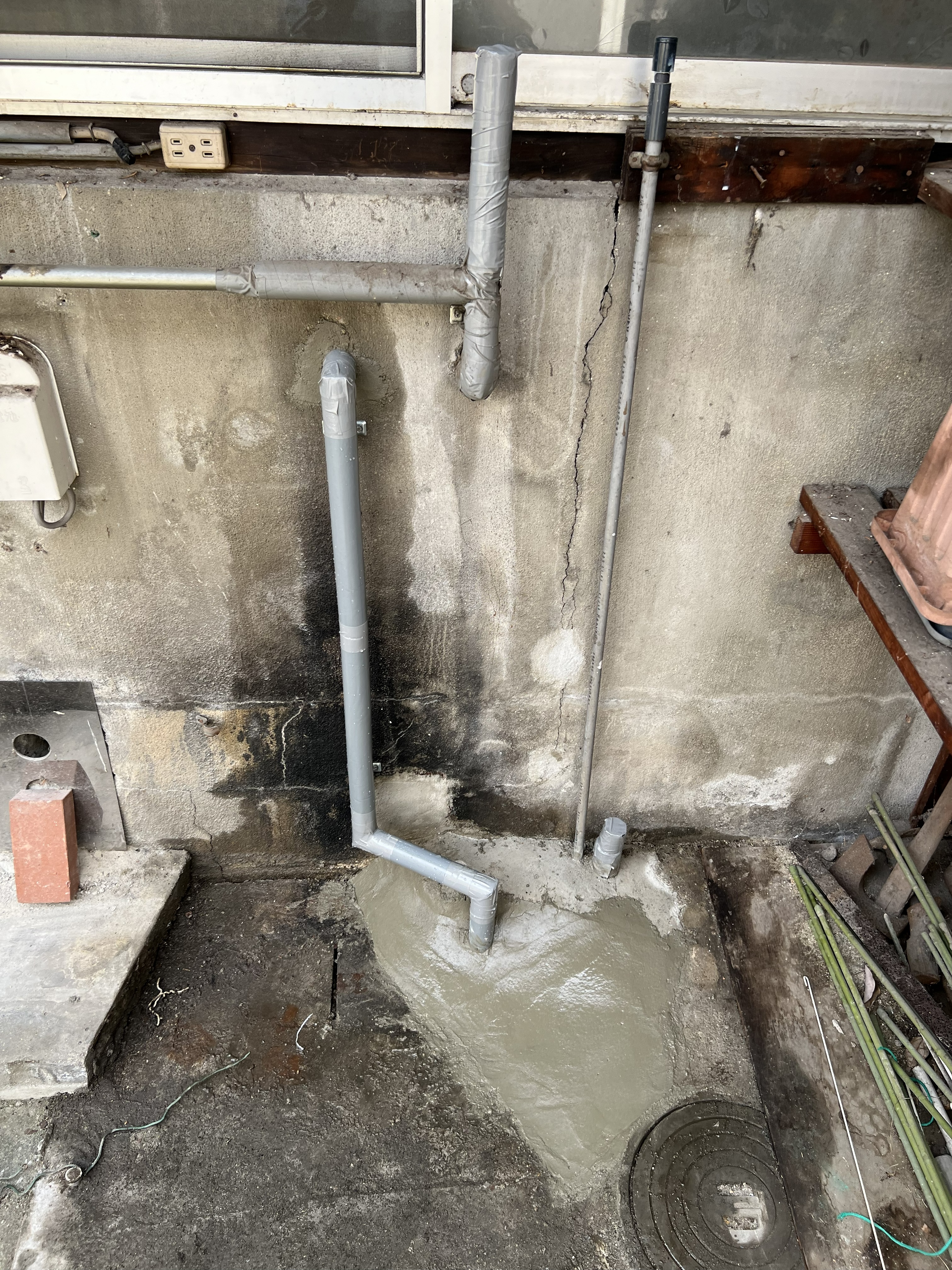 部に設置してある電気温水器の下の地中埋設水道管から漏水していることが判明し