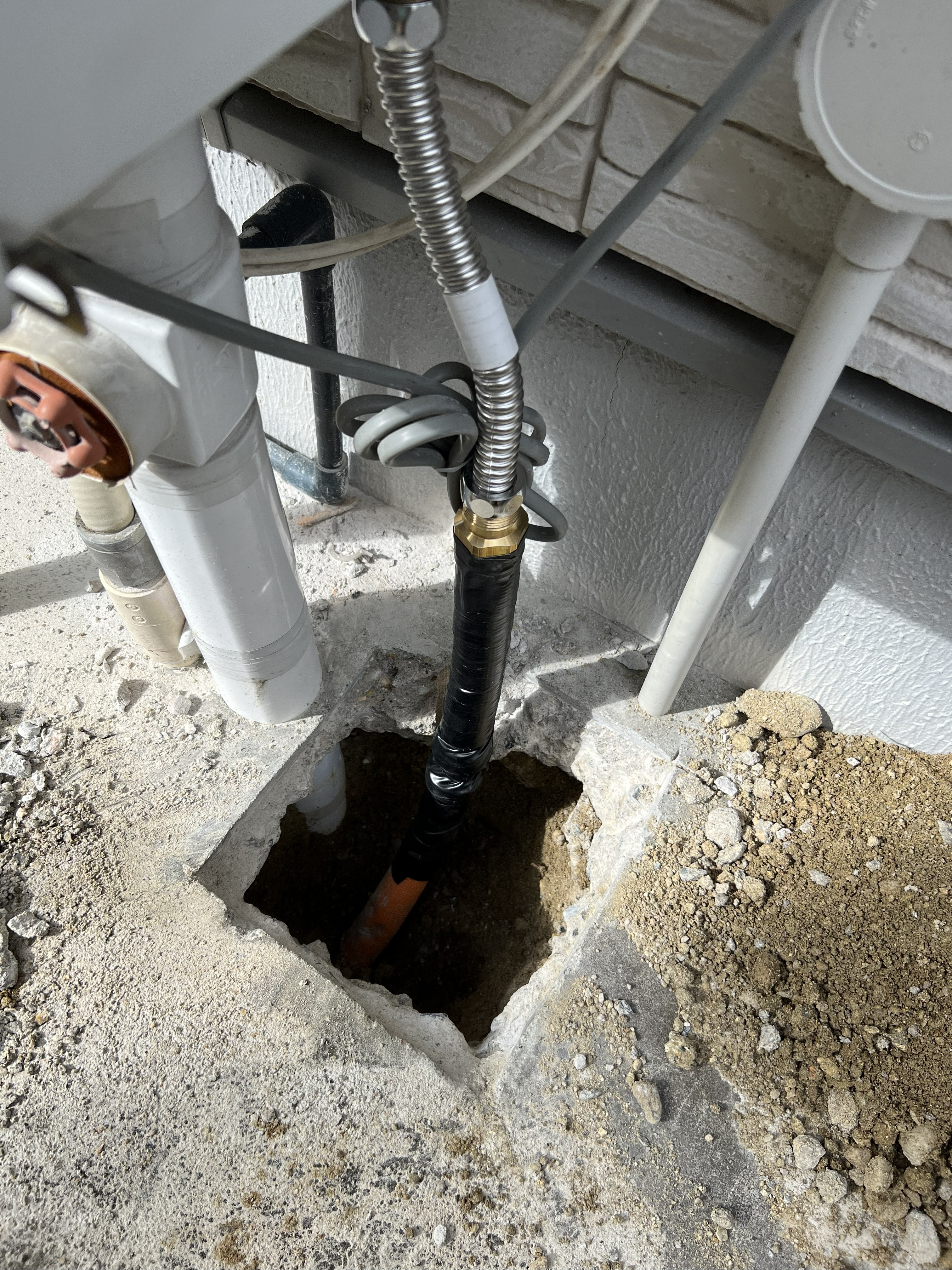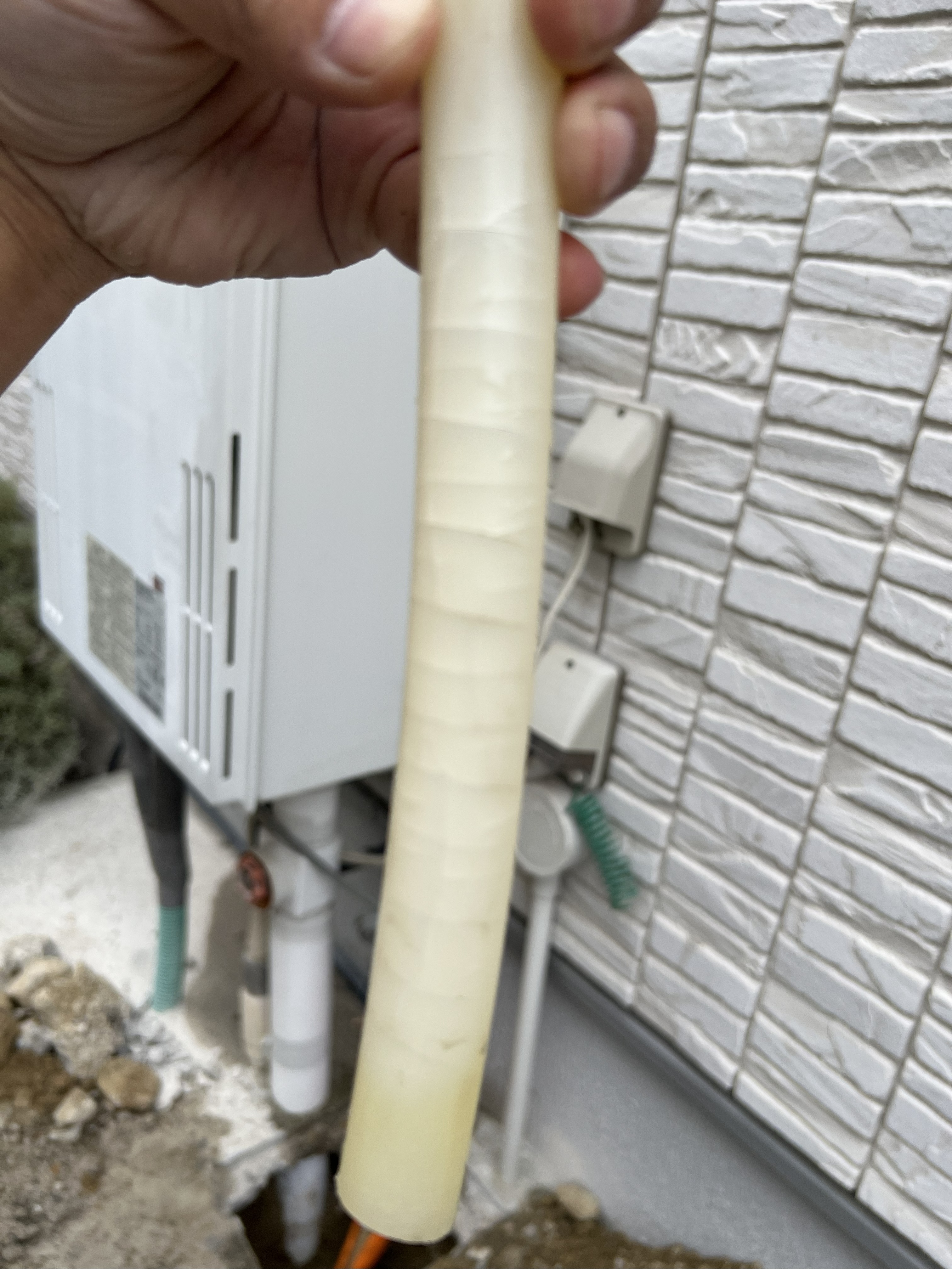配管を新しいものへ交換してから、配管を保護するために防食テープを巻いてい