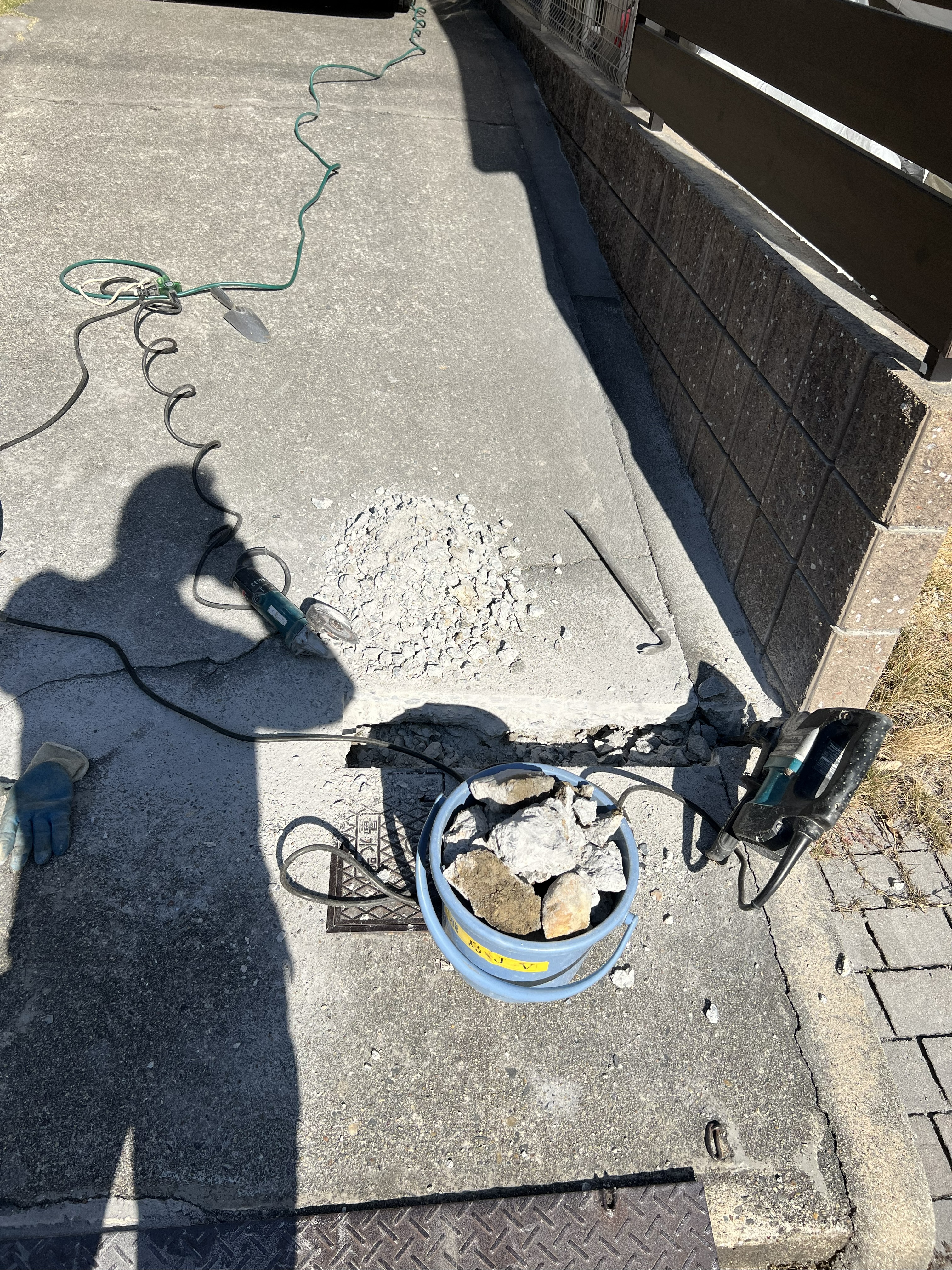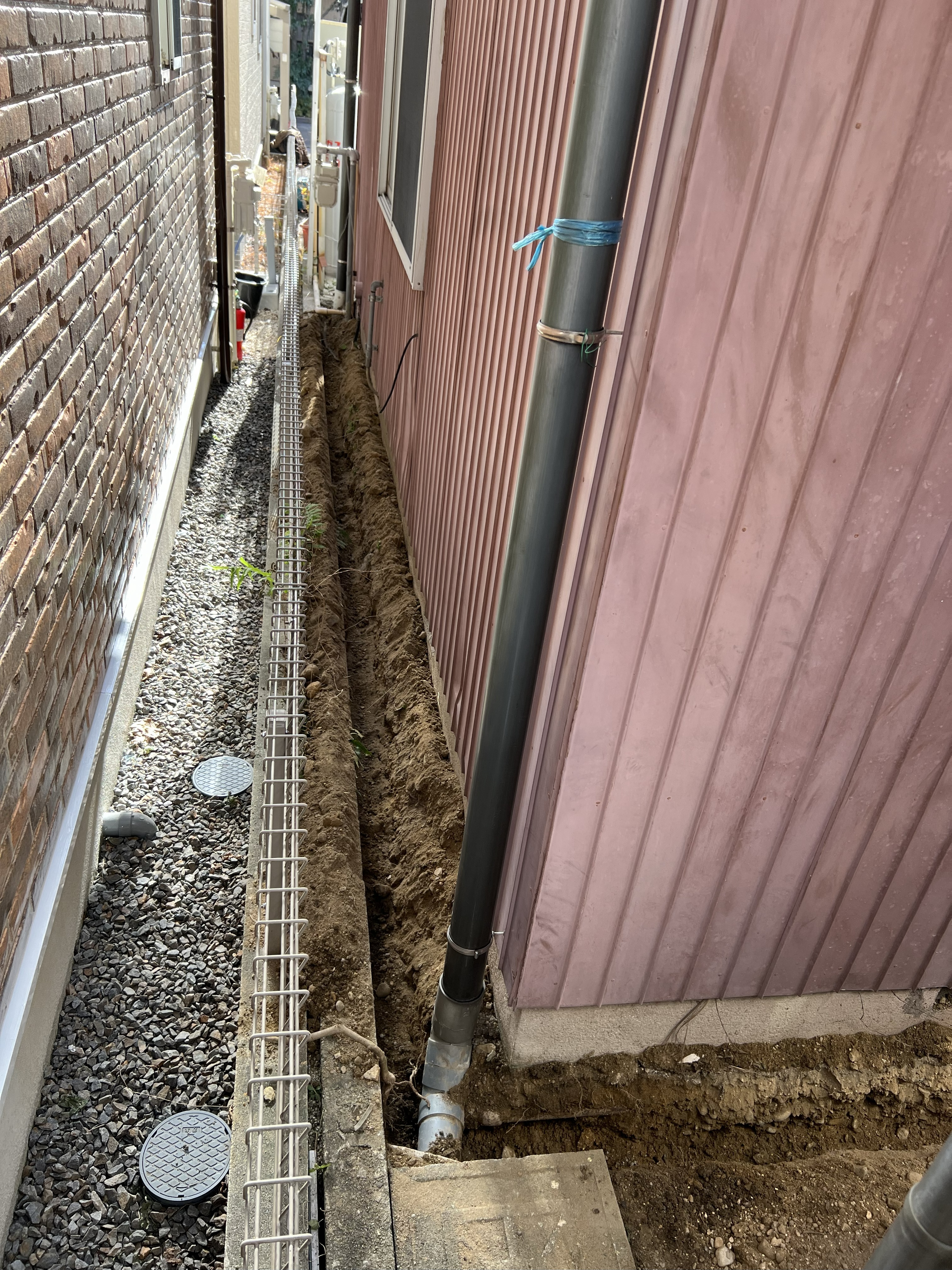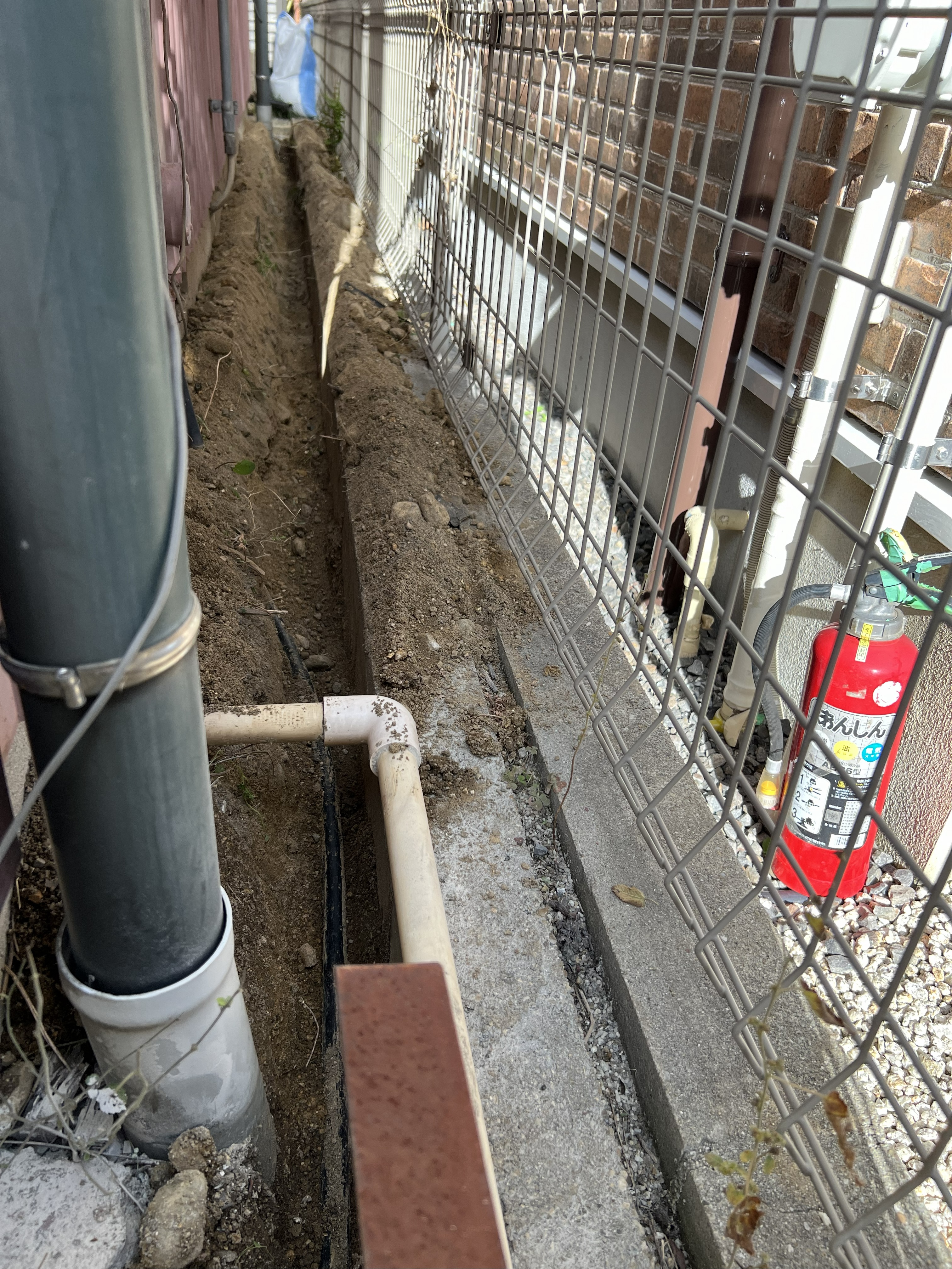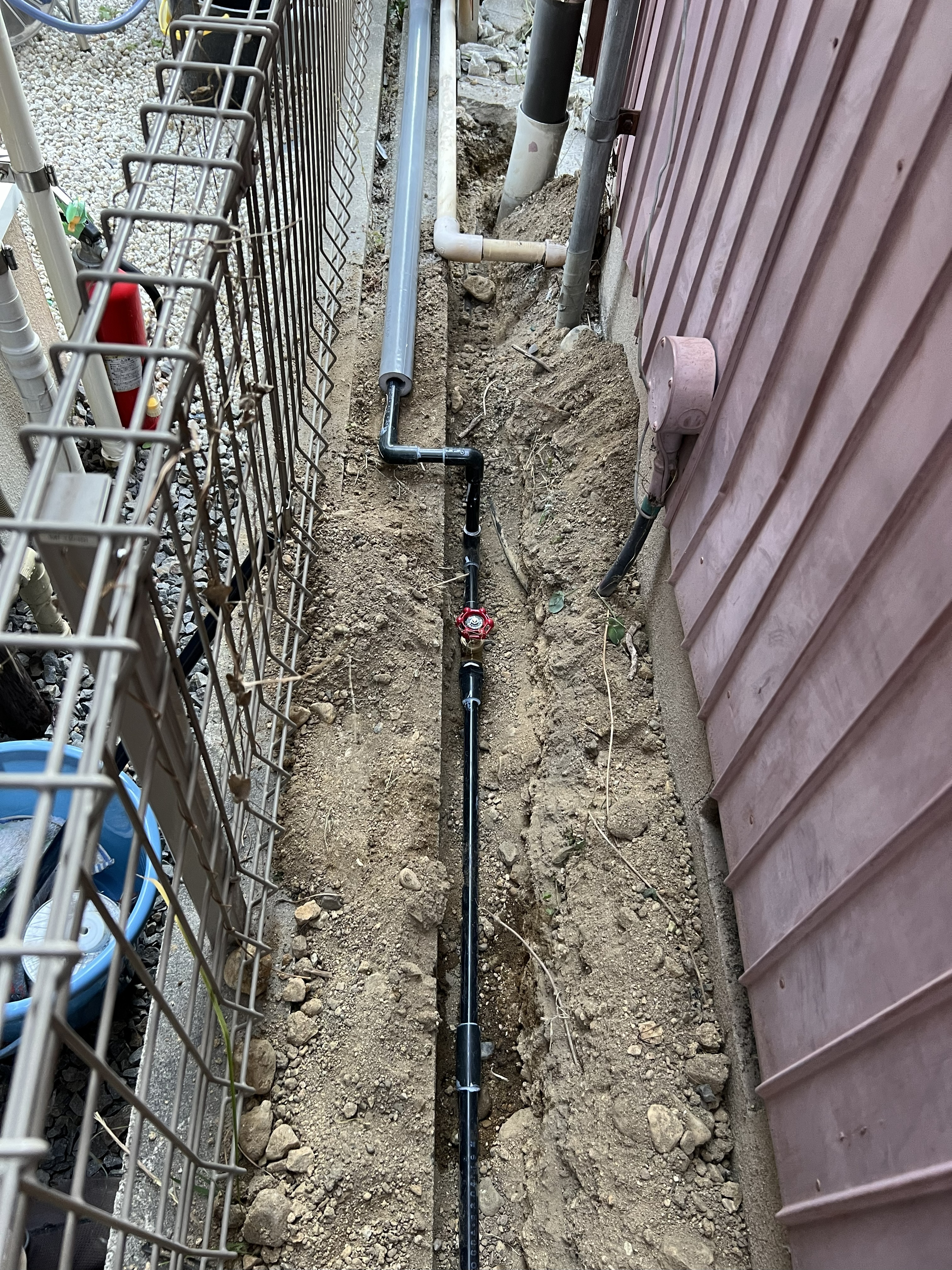 建物周囲に水道管を設置する準備が出来たので駐車場にあるメーターから新しく