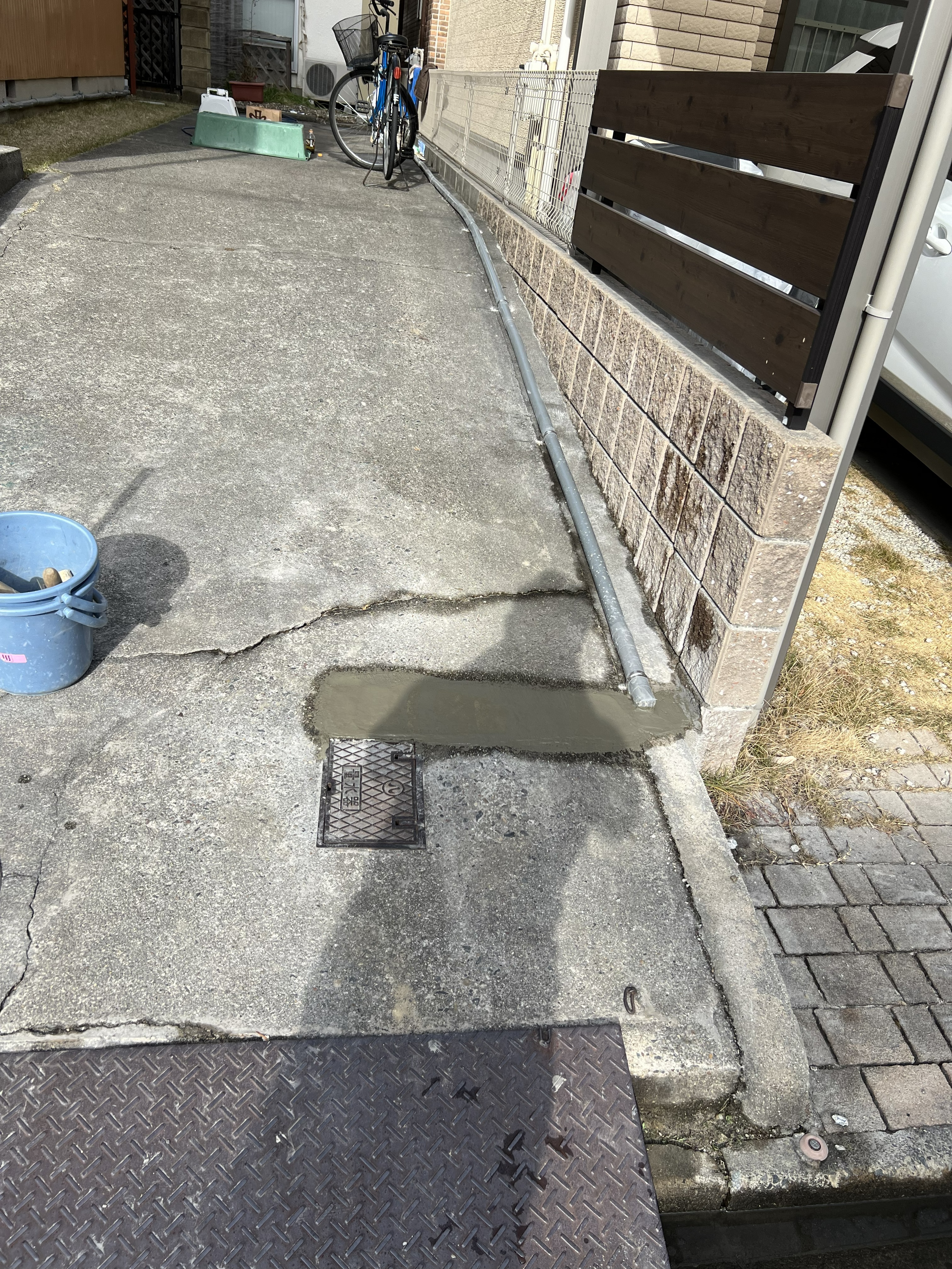 駐車場の水道管はお客様の判断でコンクリート土間上部に露出配管で設置してい