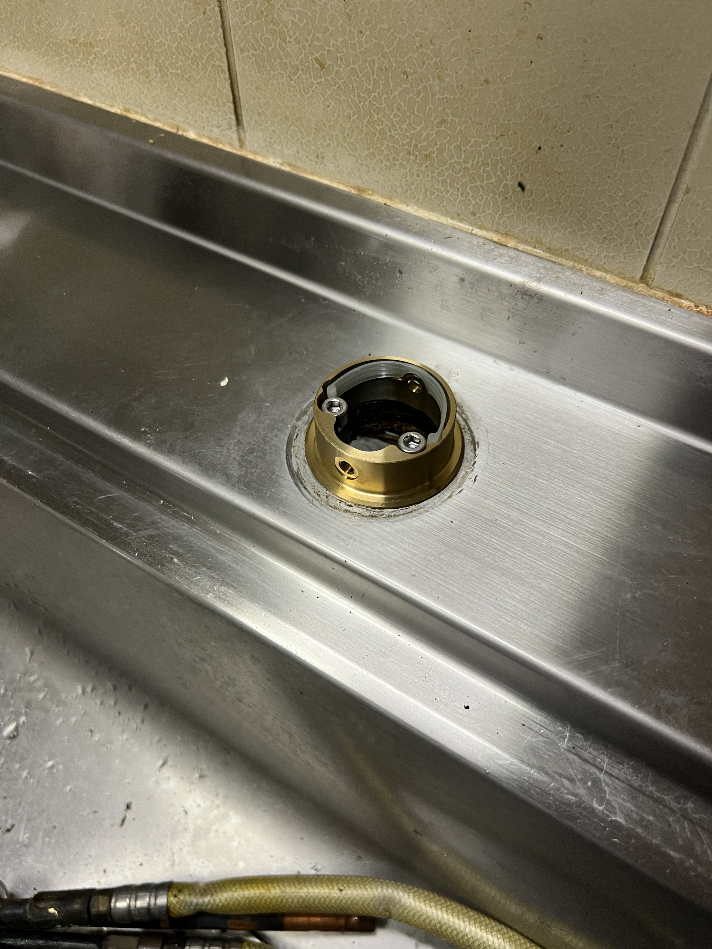 新しい蛇口を取り付けるために最初に固定金具を取付けます。