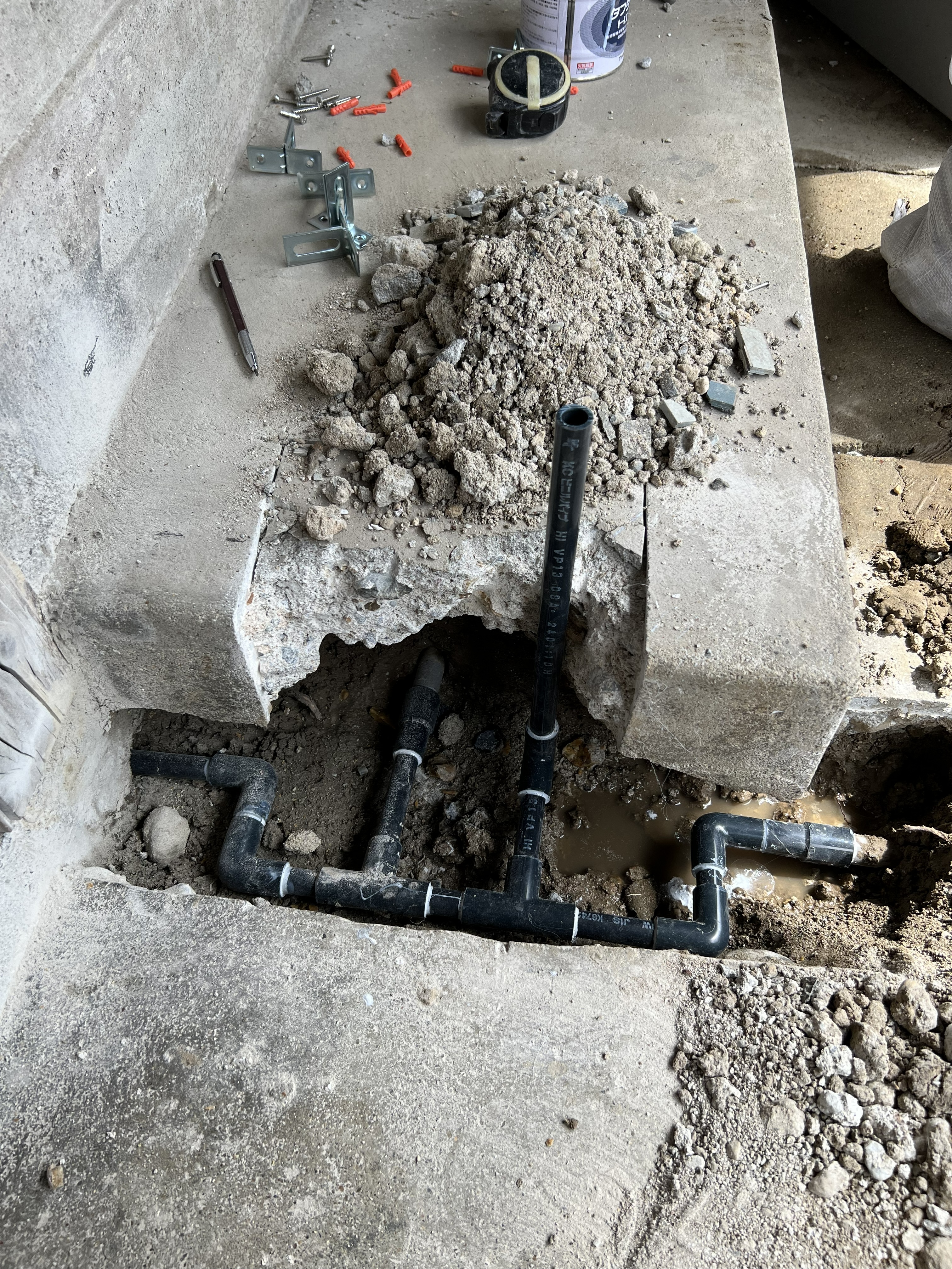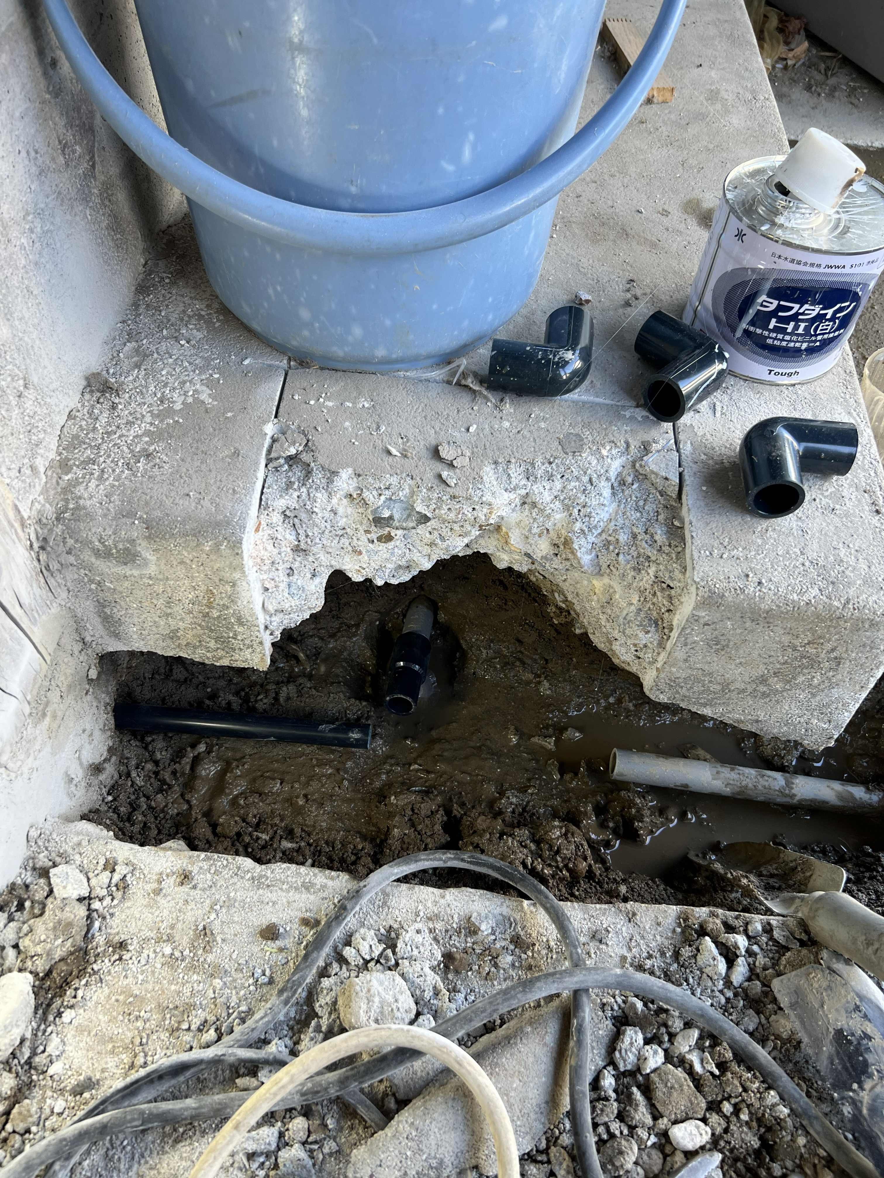 最後にコンクリートの復旧を行い通水確認をし、漏水もなくなったので修理を