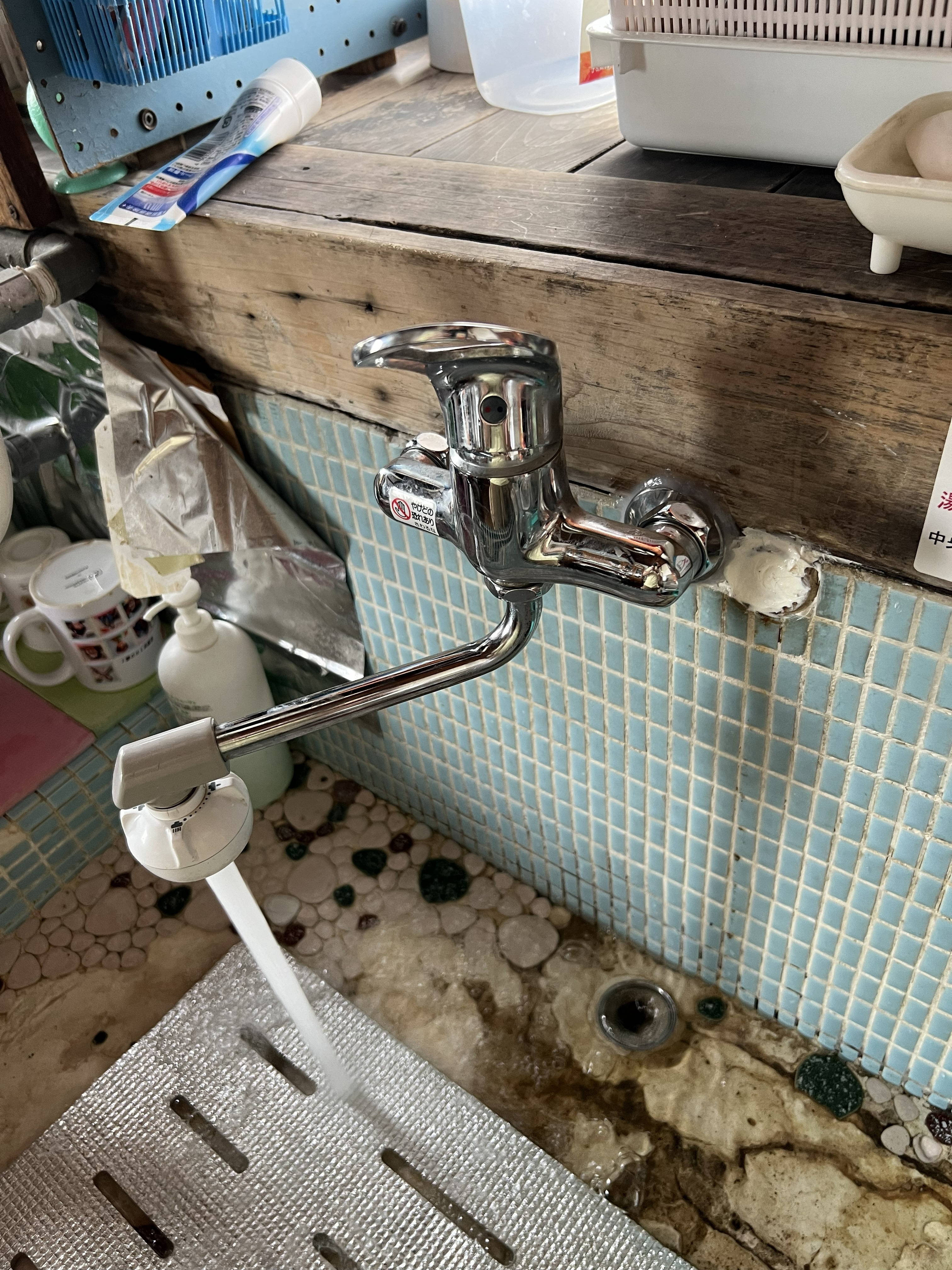 水道を出してみると勢いよく水道が漏れ出ているのが確認できました。