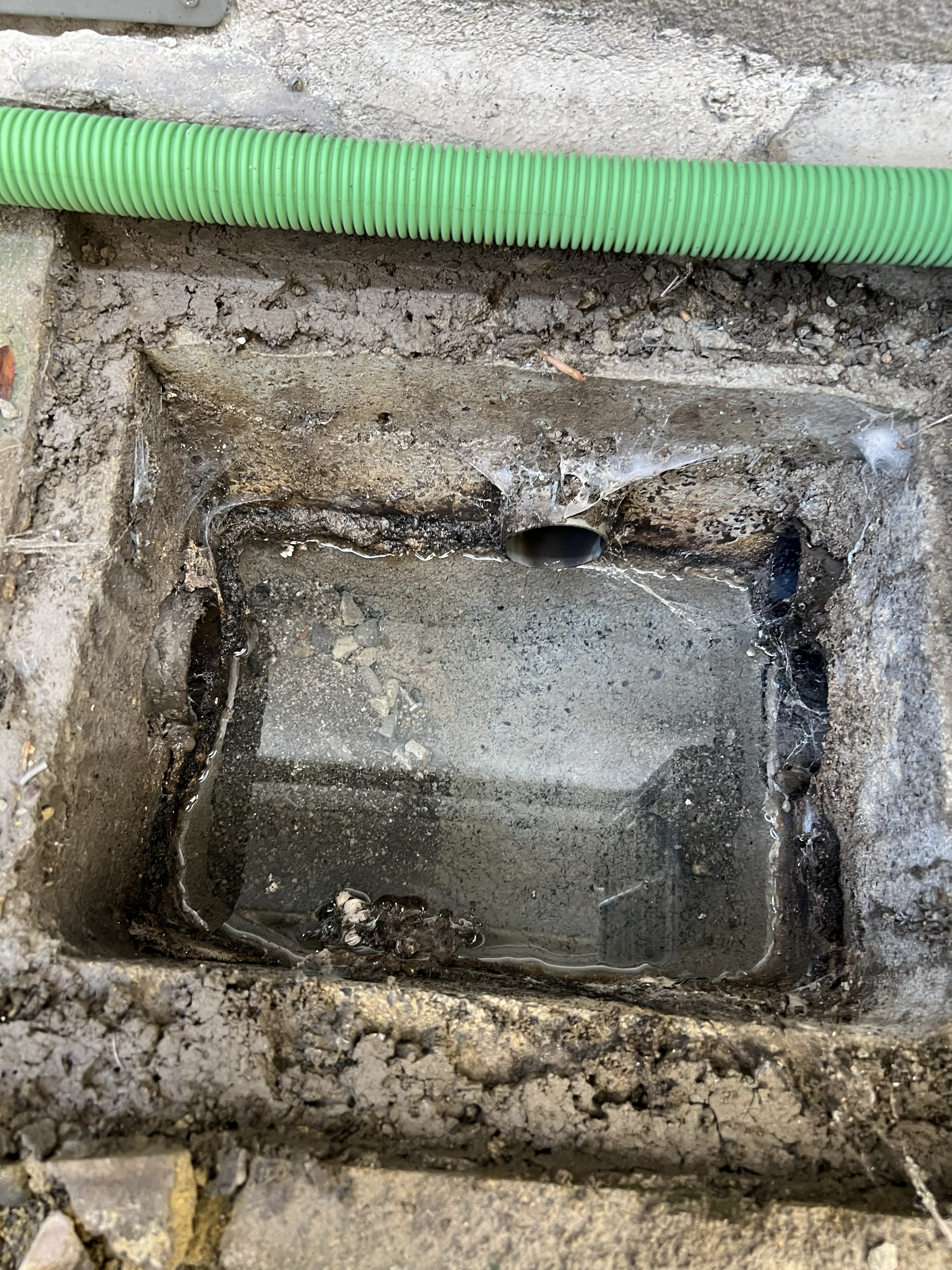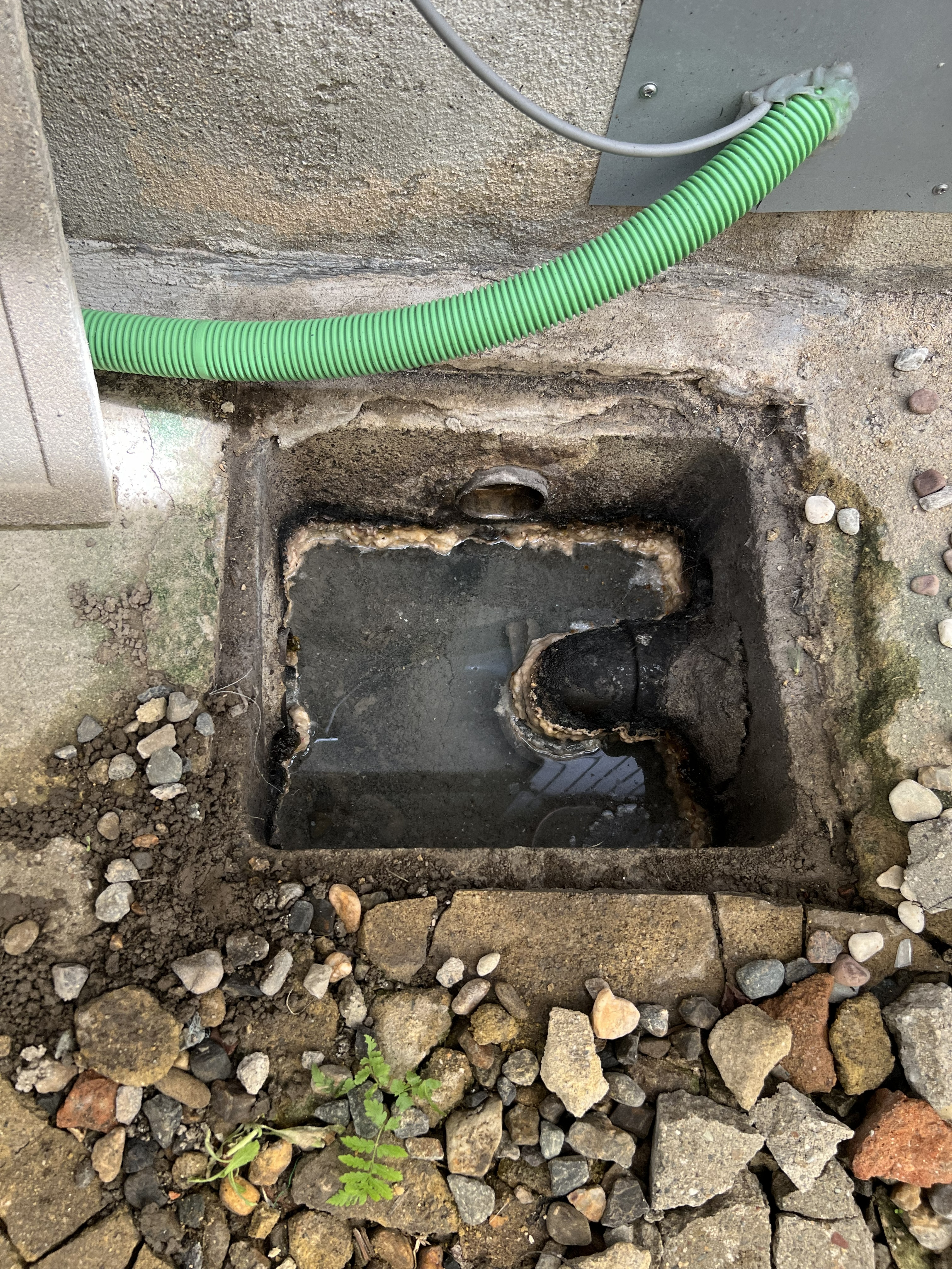 マスに繋がる排水管の勾配も逆勾配で排水の流