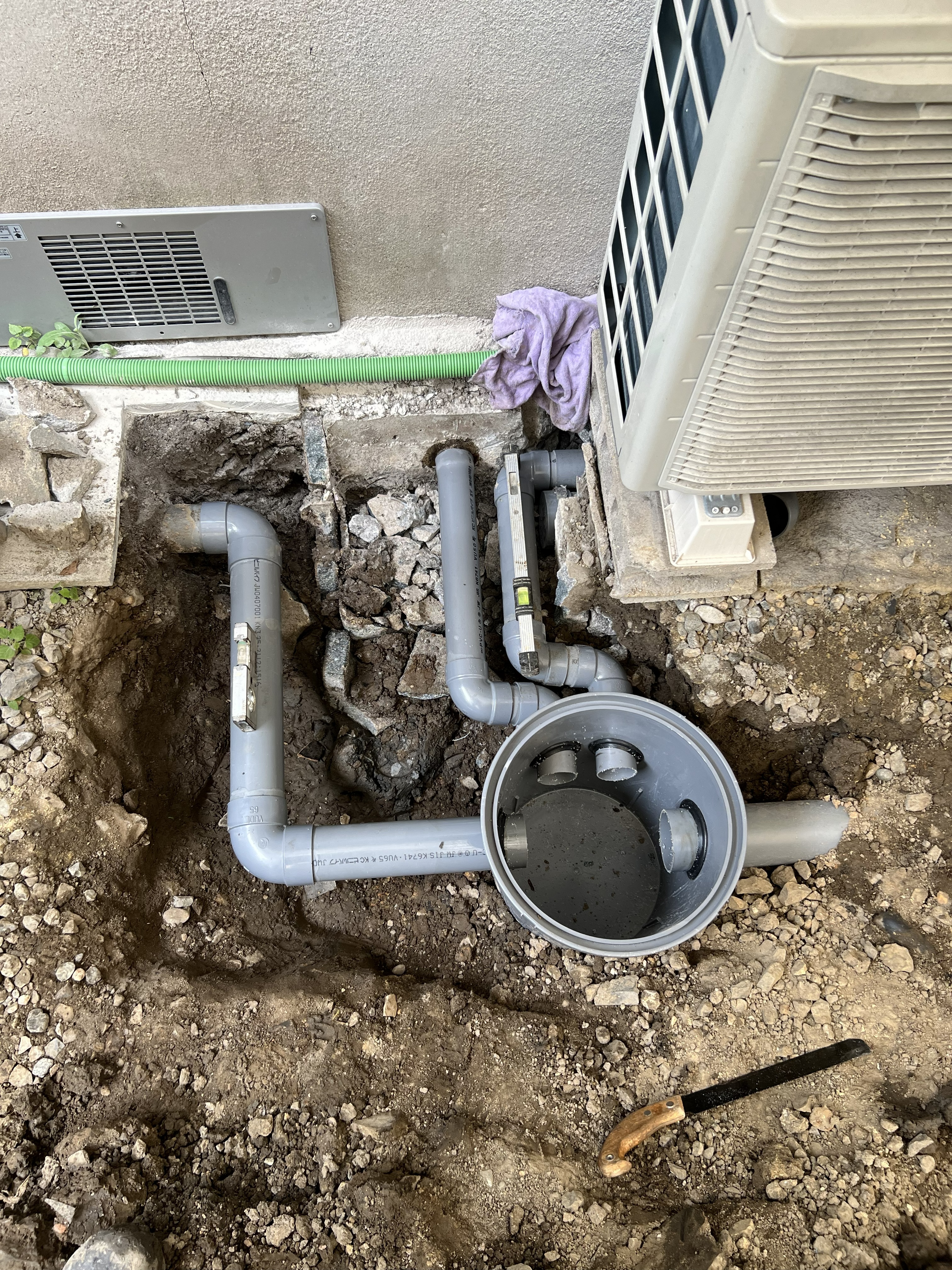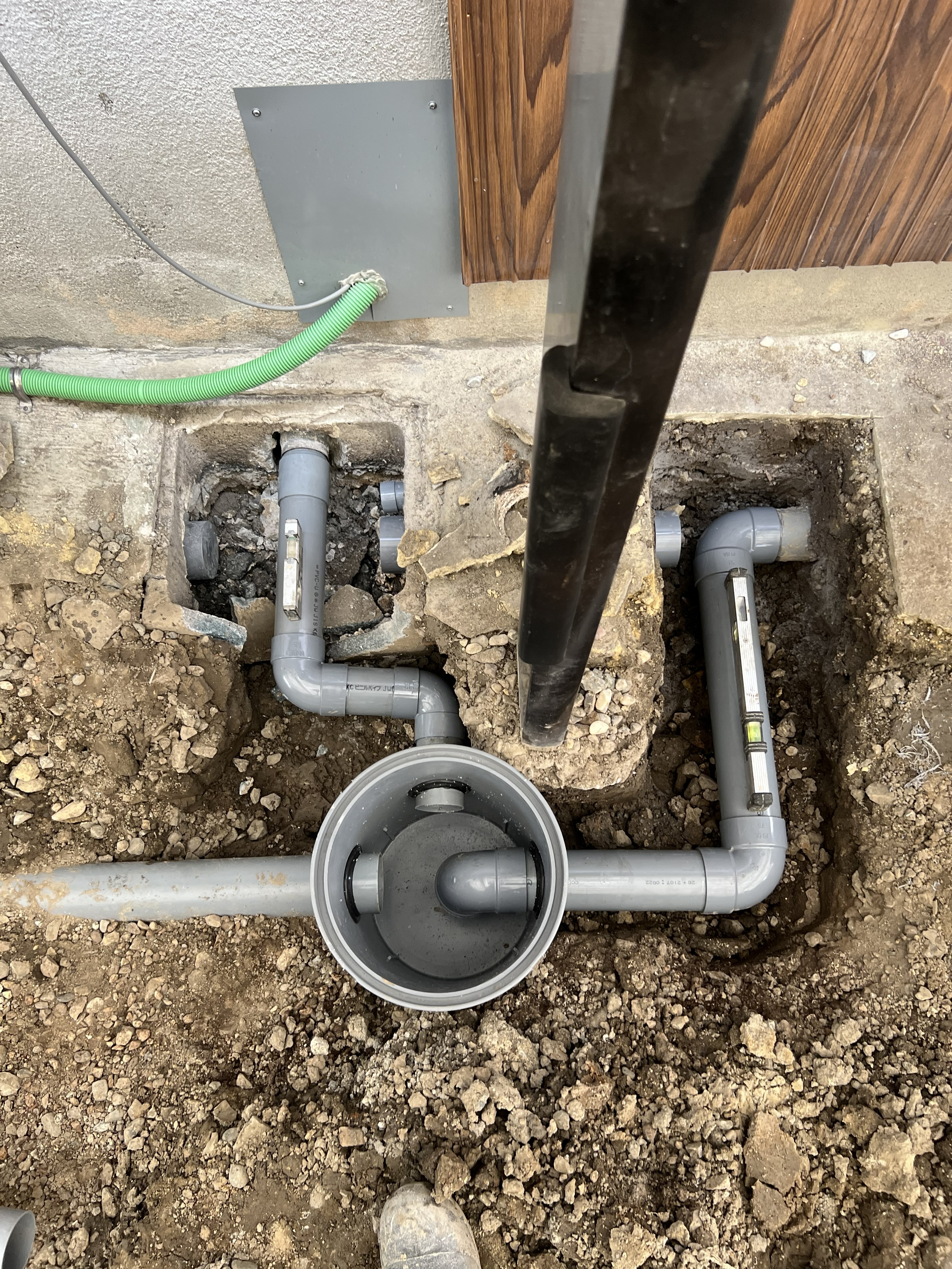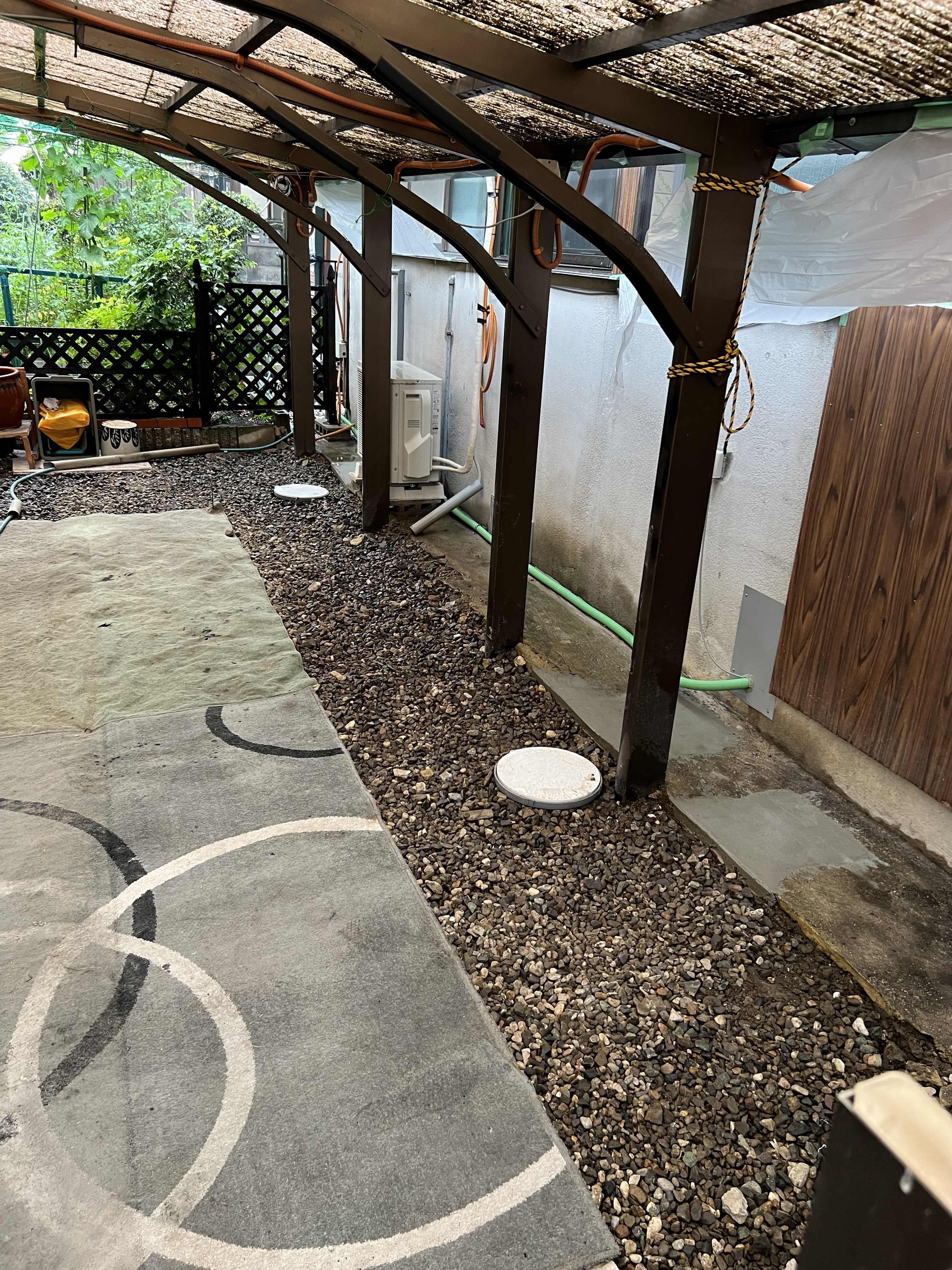 既設のコンクリートマスとは位置を変え排水マスと排水管を設置していきました。