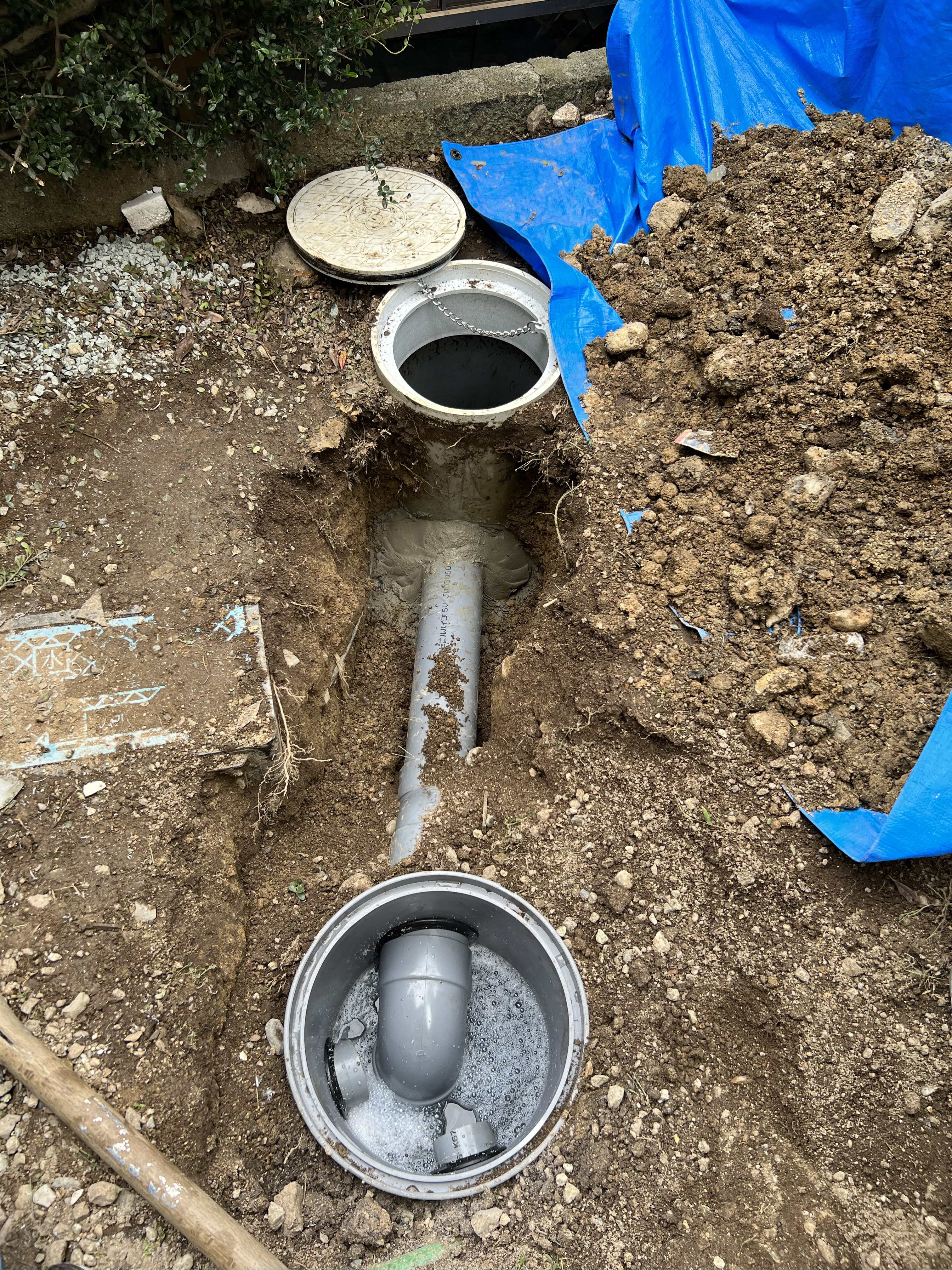 今回は接続マスまでの排水管と溜マスを新しくすることになりましたので
