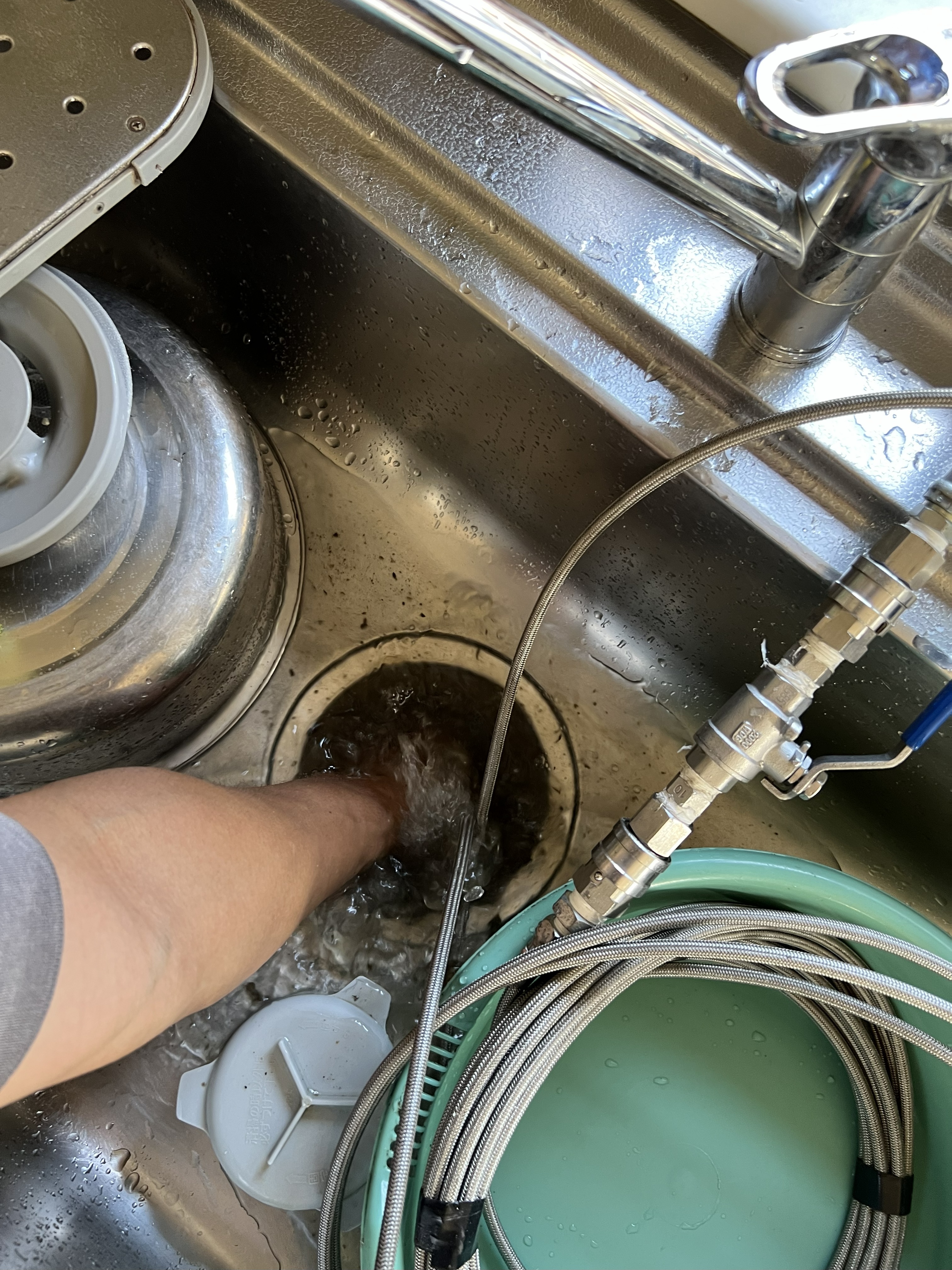 トイレの次にキッチン、浴室、洗面所ほかの排水管を室内側からまず洗浄し