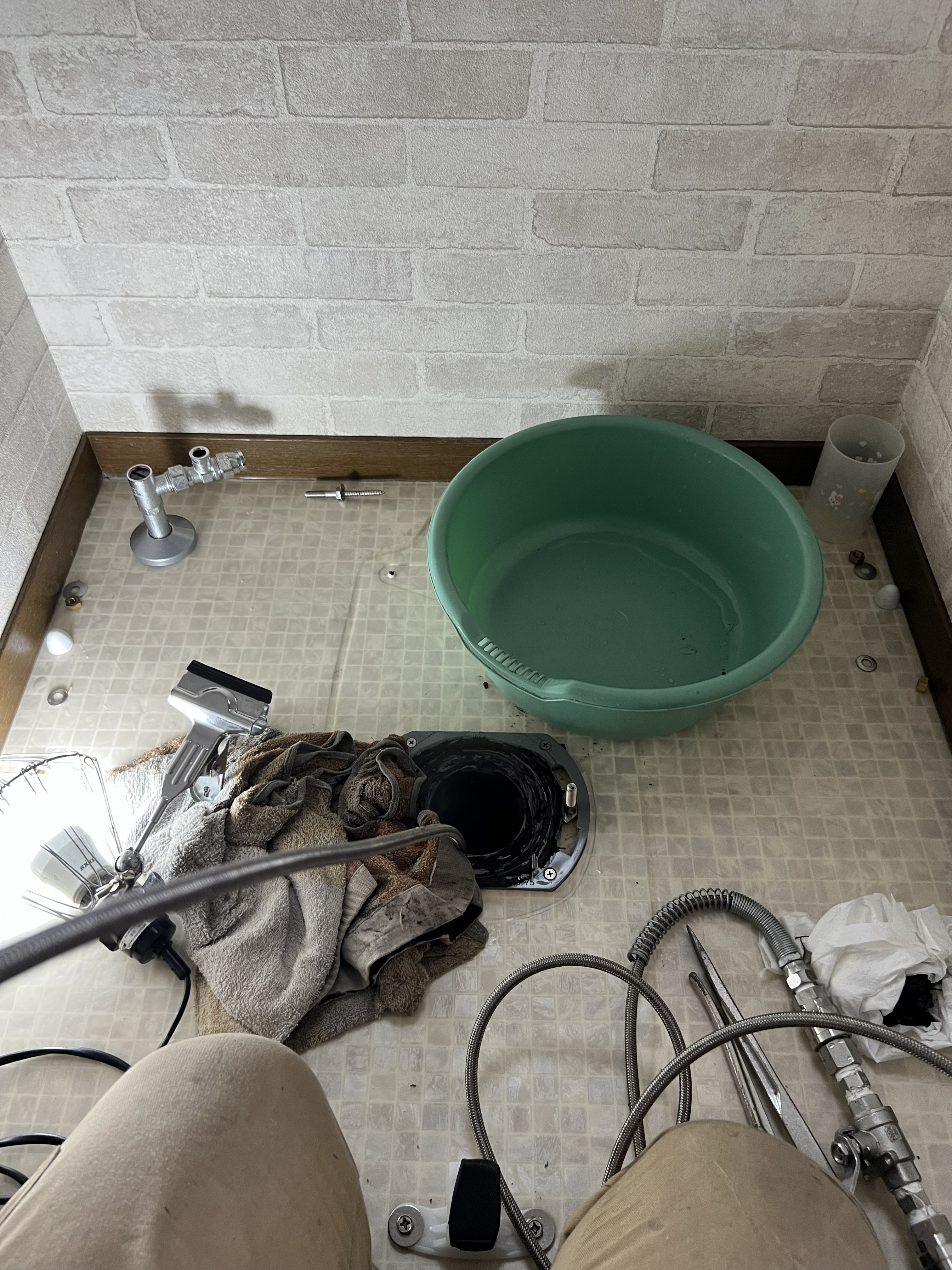 最初にトイレ設備を撤去しトイレ設備の排水管の掃除を行いました。