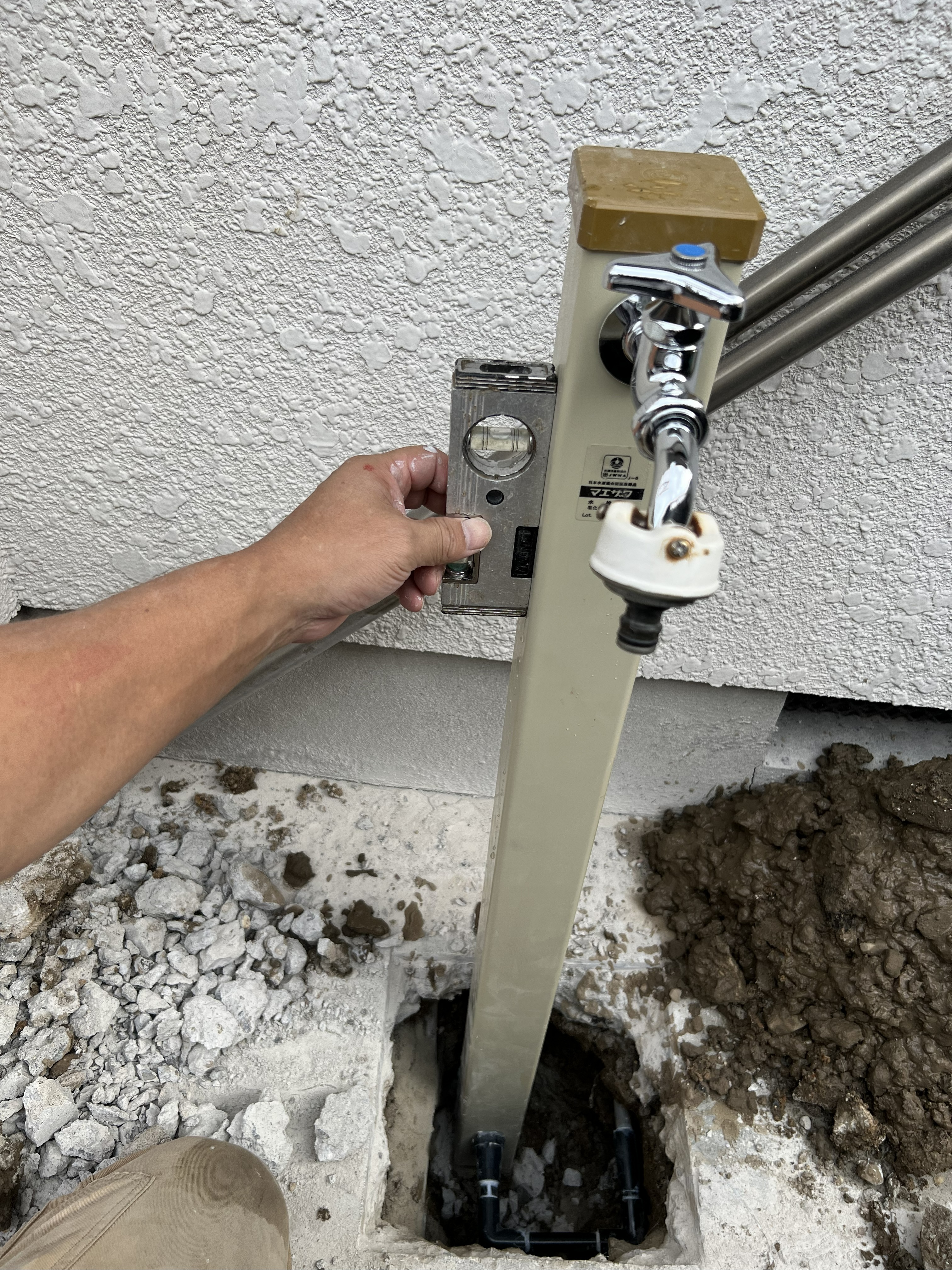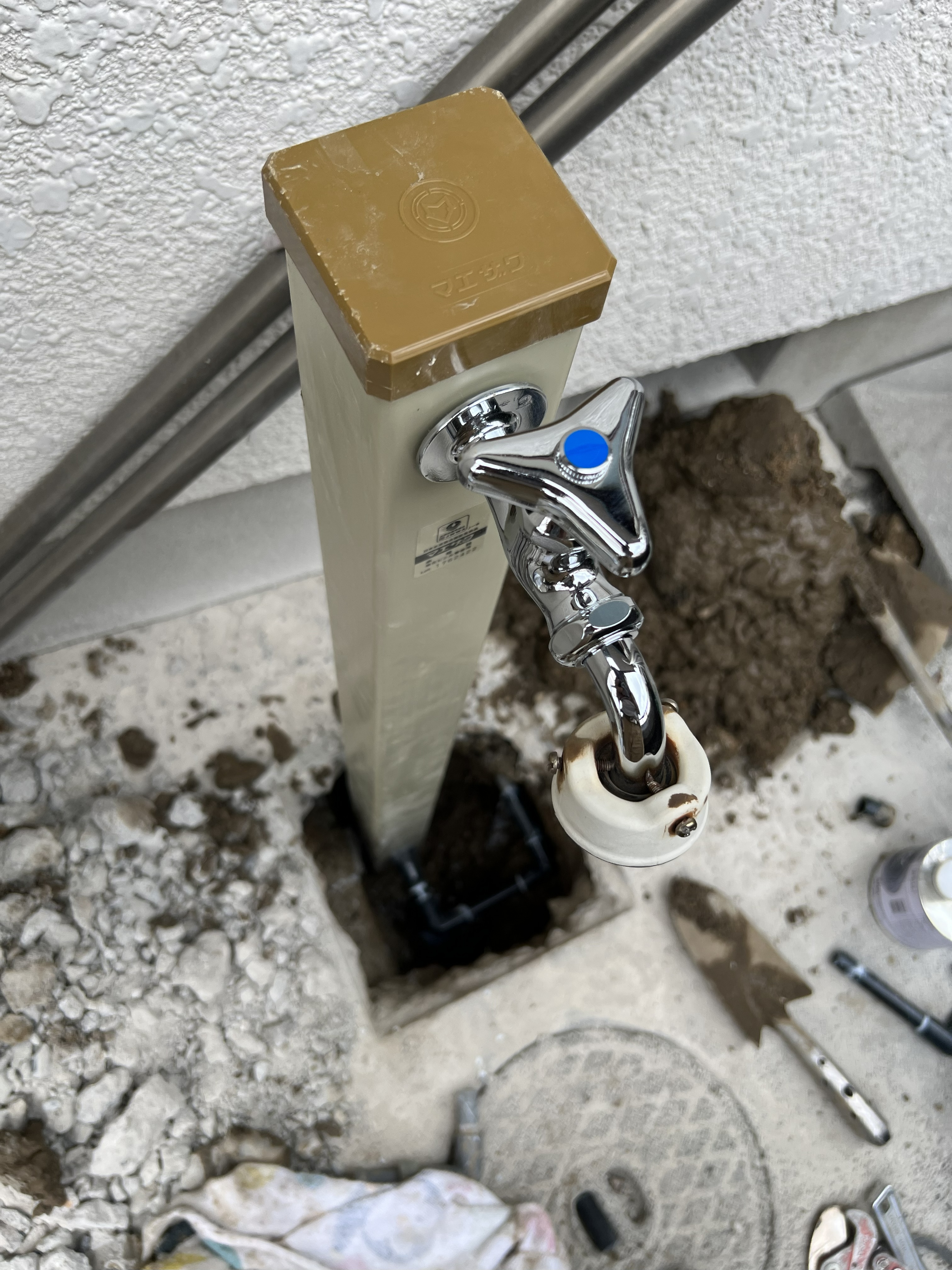新しい水栓柱を設置して新しい水道管を接続しました。蛇口本体も新しいものに