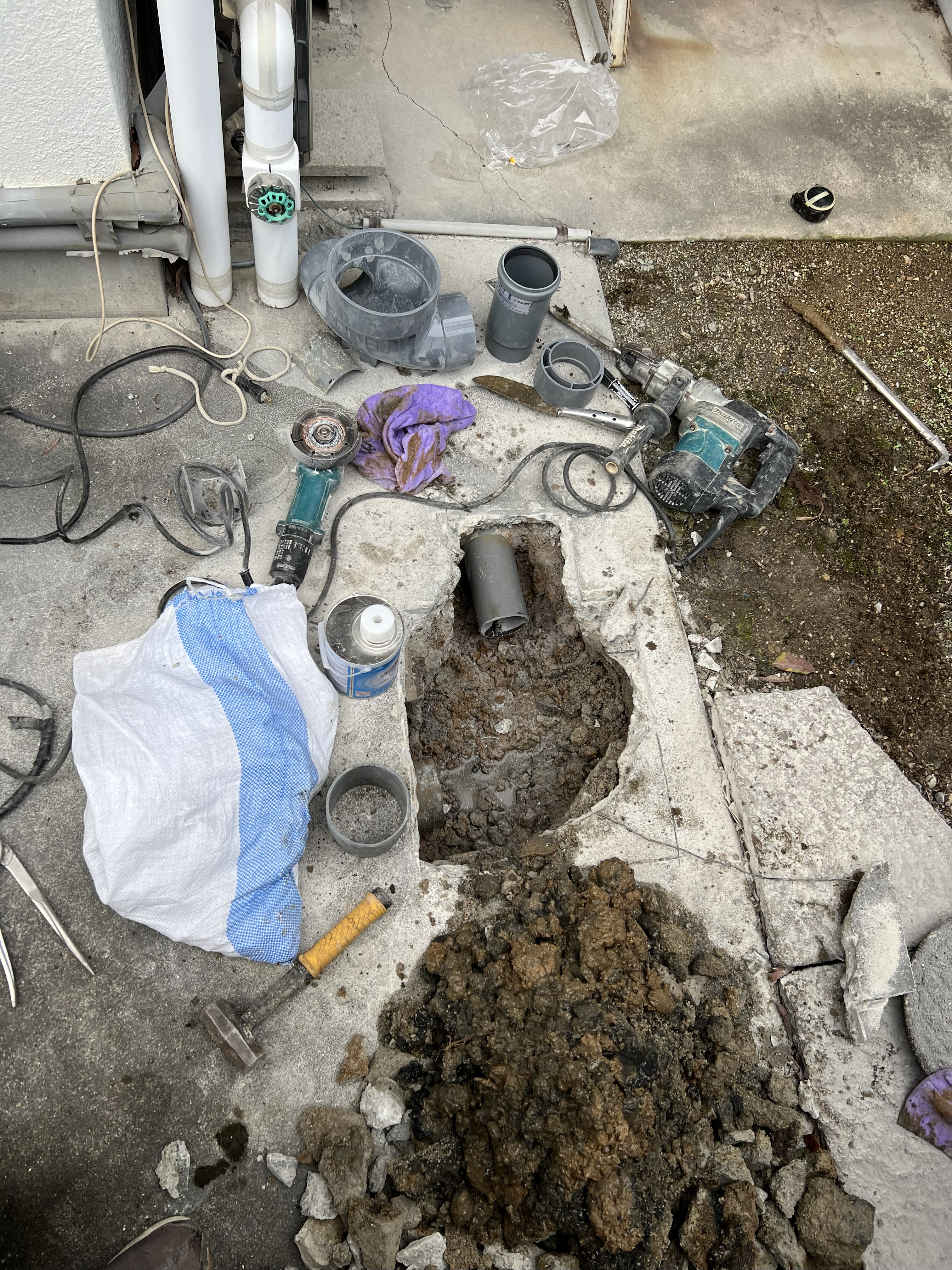 古いコンクリート製のマスから塩ビ製のマスへ交換しました。