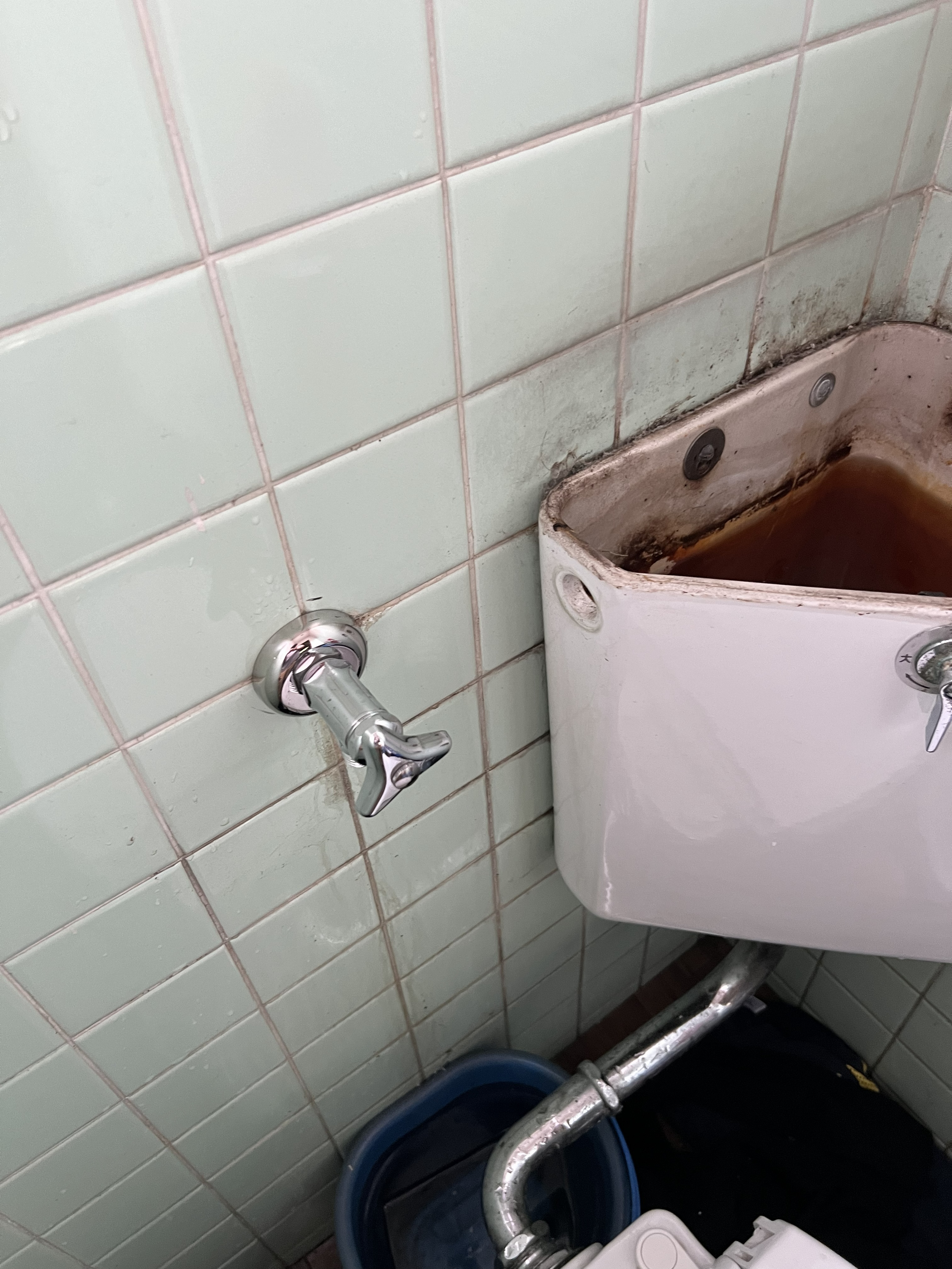 内容は、トイレの壁にある止水栓が根元で折れ