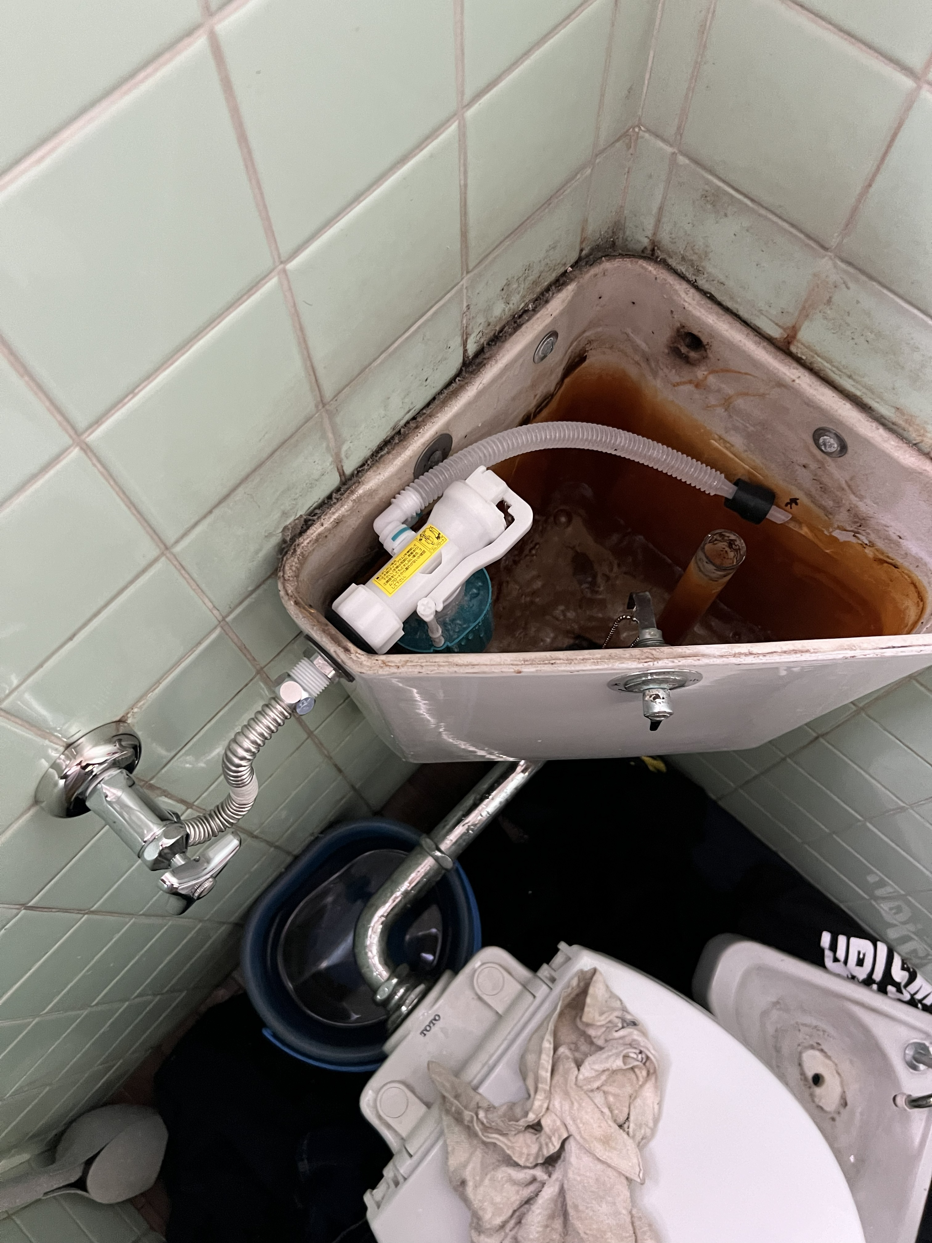 この後、手洗い管がついているタンクの蓋を取付けて修理を完了しました。