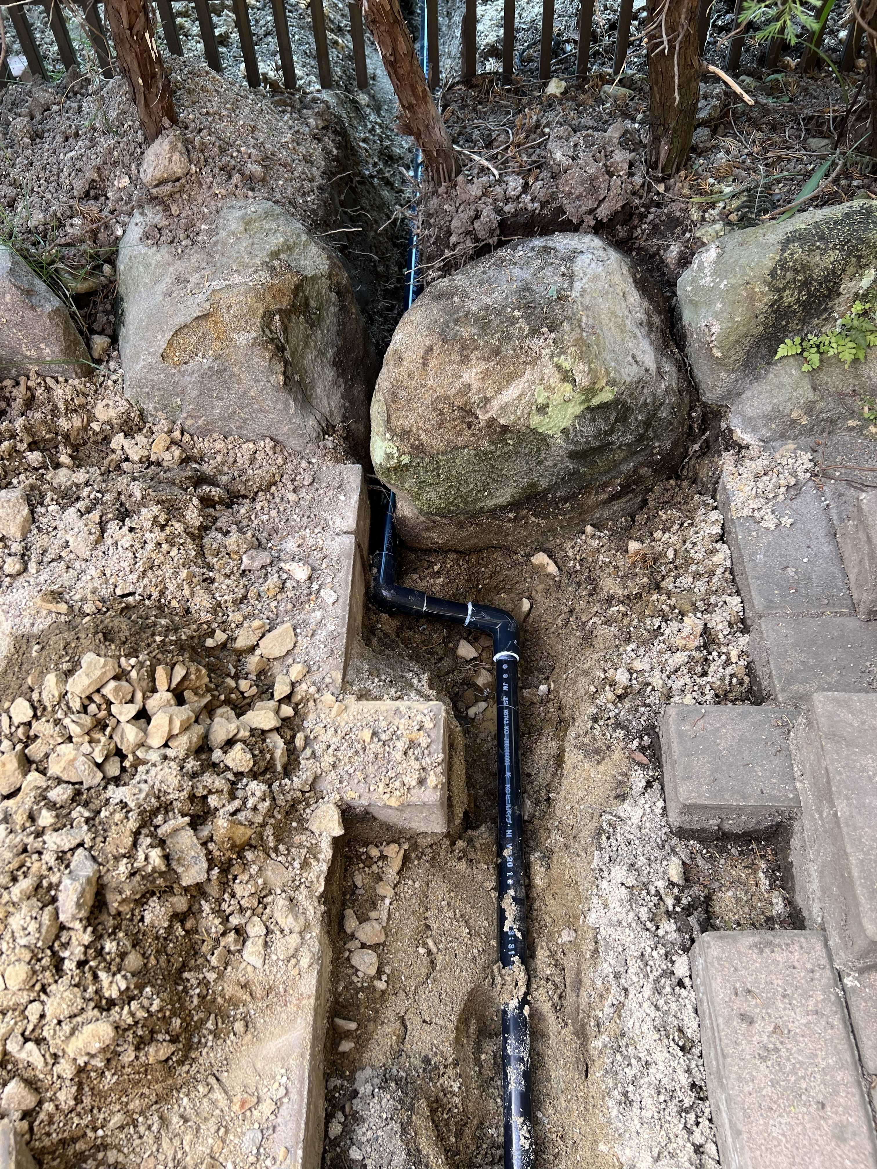 ができないので少し岩をずらして水道管を通しました。