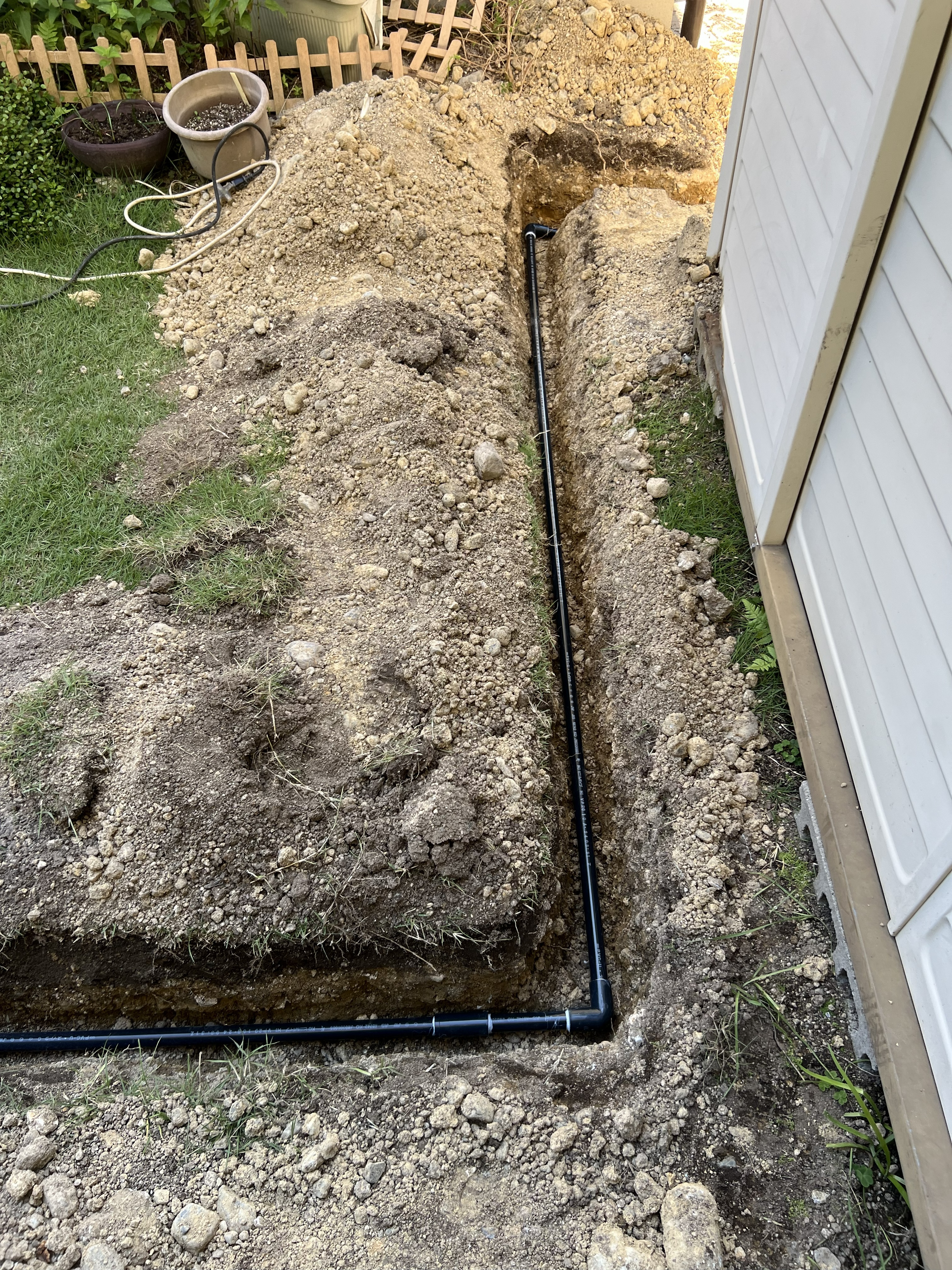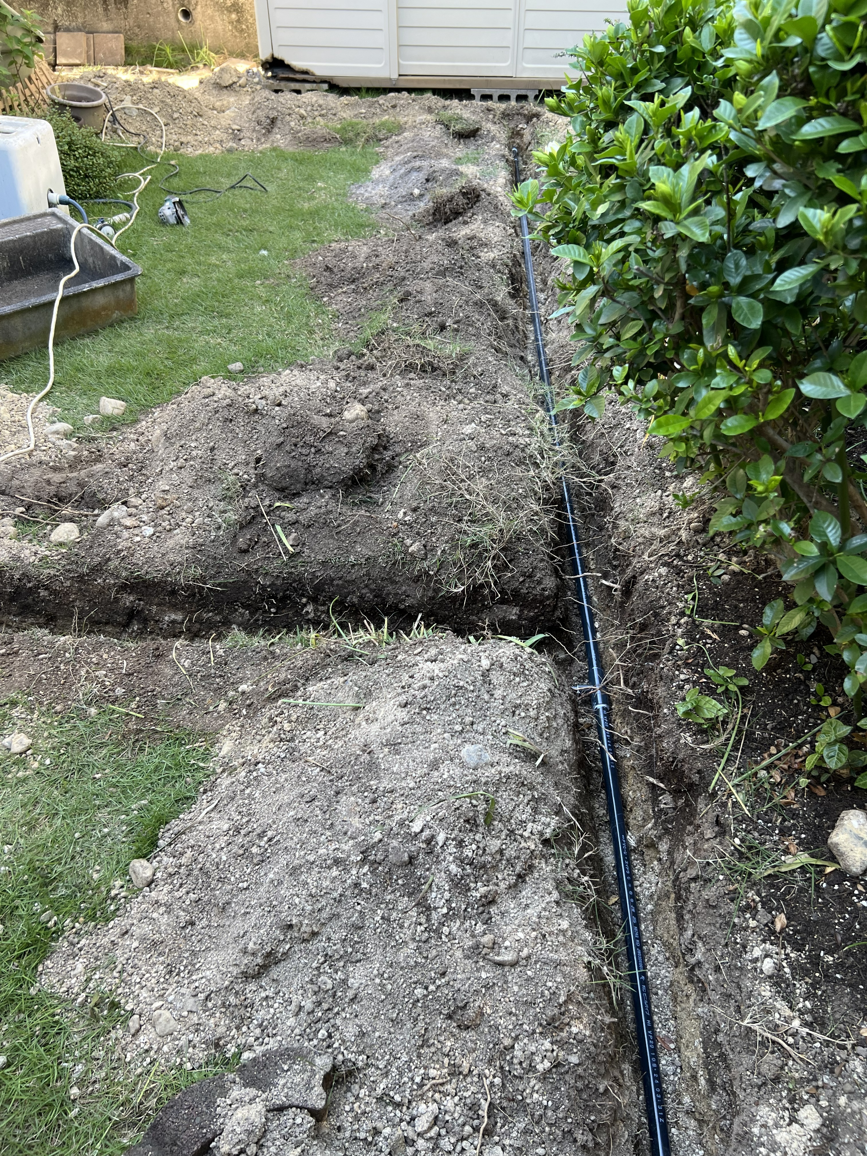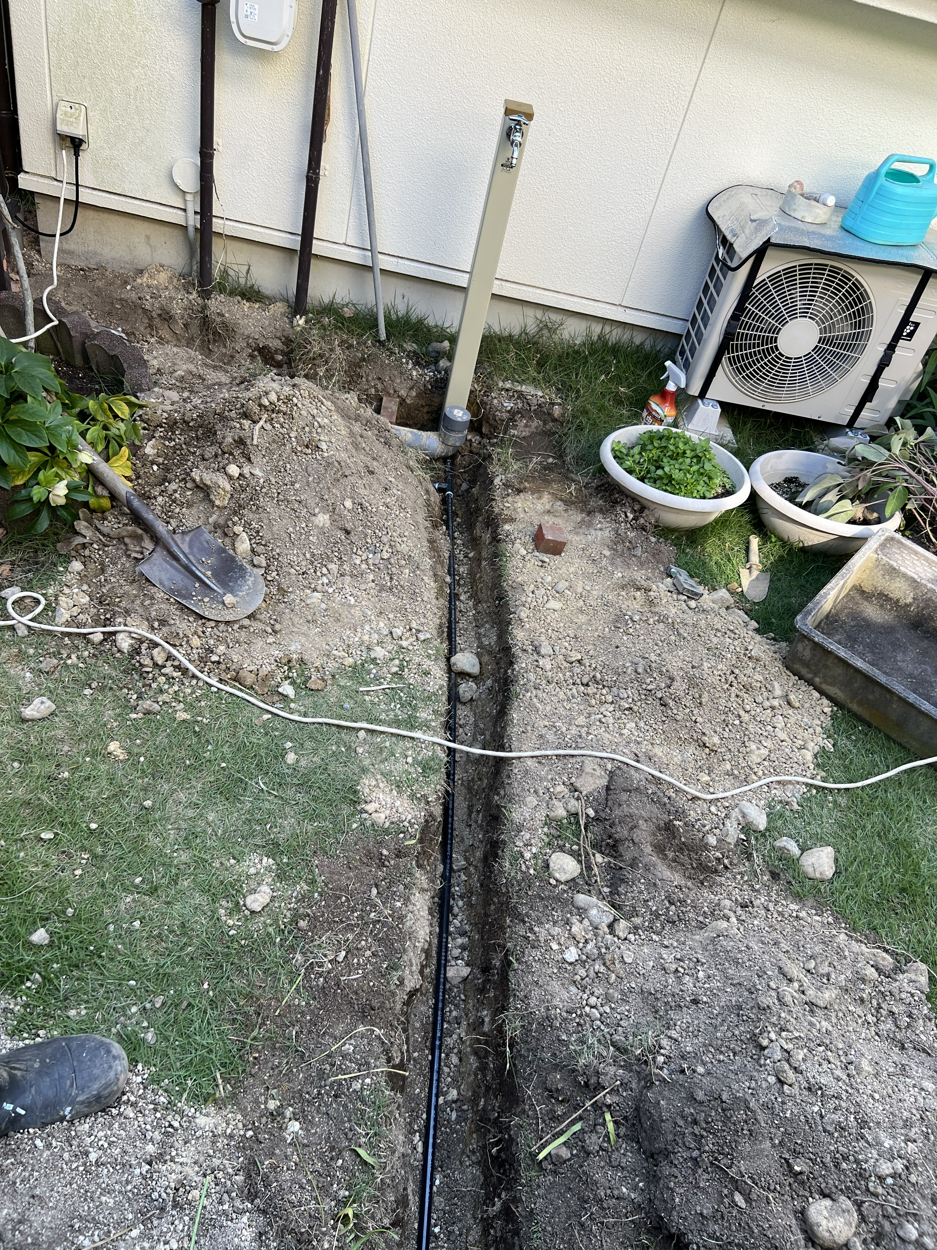 庭の方へ水道管を設置していき水栓柱と散水栓も新しくし水道管をつないでいき